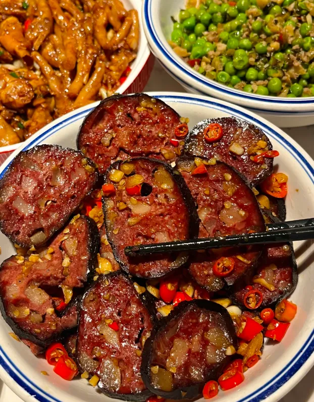 *中午可以去南门口那家老馆子,点碗血鸭,香油收得紧,肉韧带辣。