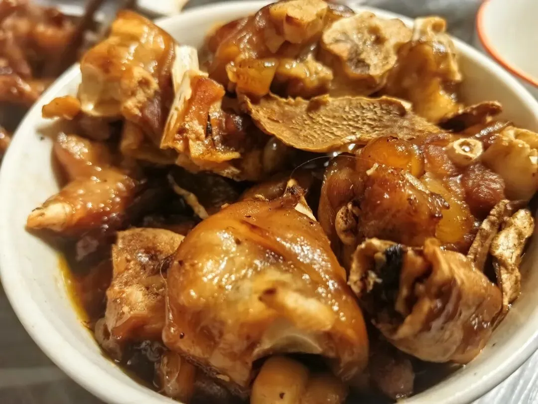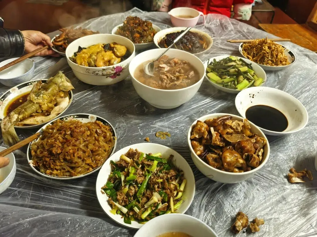 大姨搞的年夜饭摆满一桌,全是我从小吃到大的口味:扣肉肥而不腻,老弟做的果饭那就是真正的果饭:只有果没有饭,卤鸡爪越啃越香越辣,还有那道清蒸鱼跟高压锅猪脚,鲜得掉眉毛。电视里春晚在唱,崽崽在旁边疯跑,屋里人扯闲谈,这才是过年该有的样子噻。