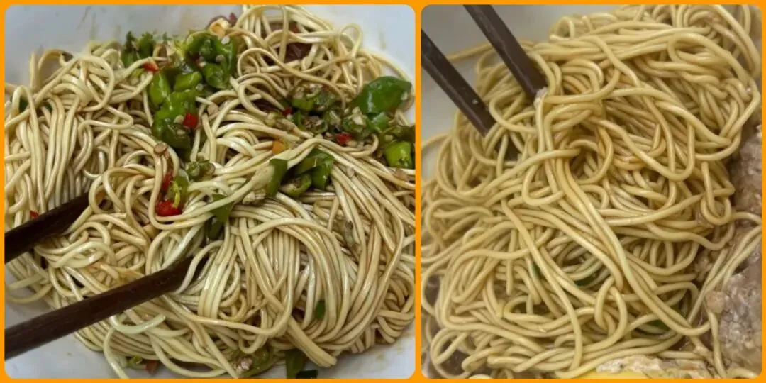 喜欢他家这种鸡蛋碱面,尤其爱带迅干(干拌面),猪油香加上碱香,鸡蛋面筋道的口感,真是爱了。个人吃面喜欢肉丝、肉饼蒸蛋、顶多豆豉辣椒排骨的码子,因为相对来说不会盖过面的原香,吃起来更纯粹。加点他家的萝卜丁、青辣椒等小料,口感就更加丰富了。汤粉也不错,粉切得细,个人吃粉会要求煮得软烂一点,并且要求汤多粉少,感觉入味好吃。小时候看我爸爸最喜欢点酱汁码子,我不理解,不晓得这一砣砣的肉有什么好吃的……如今到了这个年纪,尤其在外面很多粉店都吃不到的情况下,才发现要把酱汁码子做得好,还真不容易,肉一丝丝的,不柴不腻,还真不错。朋友爱吃粉,还喜欢放各种配菜,他家的配菜也受欢迎,总是有些盆子一下就见底了。