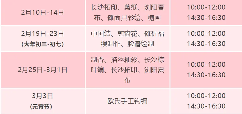 活动时间:2月18日(初二)至2月23日(初七)、3月3日(元宵)
