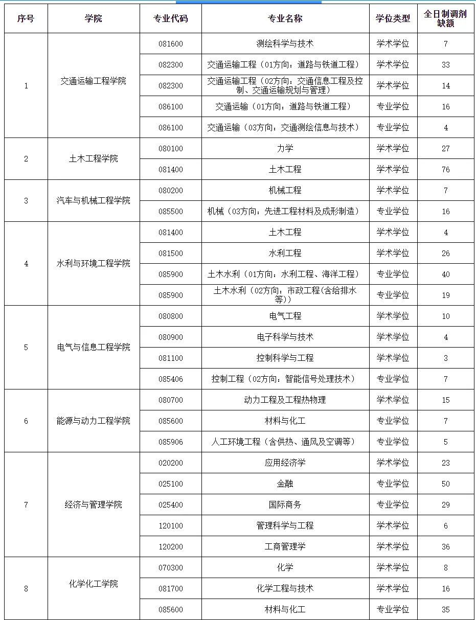1.请有意调剂到我校的考生关注“中国研究生招生信息网”调剂系统(https://yz.chsi.com.cn/yztj/),我校调剂系统将于4月8日开通(对调剂生源不足的专业适当延长时间)。具体开通时间以研招网“调剂服务系统”开通时间为准。在调剂系统开通期间,考生可填报志愿,请考生及时登录并申请调剂长沙理工大学相关专业。