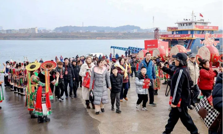 时光流转,兴马洲的年味在坚守中创新。2026年春节,兴马洲以“马跃兴洲 春启新程”为主题,举办新春民俗喜乐会,让老习俗焕发新活力。渡口处,雄狮腾跃、鼓点震天,村民捧出拦门酒迎客,花瑶山歌在江面上回荡。直径4米的巨型大锅烹制杀猪菜,80桌团圆宴沿江摆开,村民与游客围坐同食;村部里的长寿宴温暖人心,为高龄老人送上新春关怀。