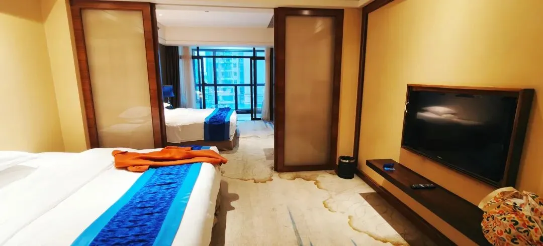 带个小阳台还不错。春节期间,这样一个套房四百多,算是性价比很高了。