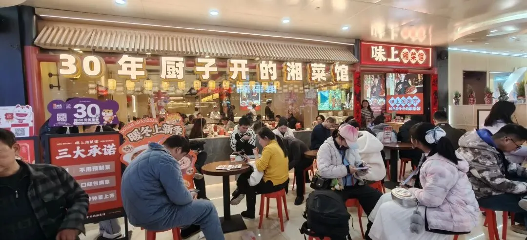 旁边几家,人也都很多。去八楼找了一家人不是那么多的味上湘菜馆。