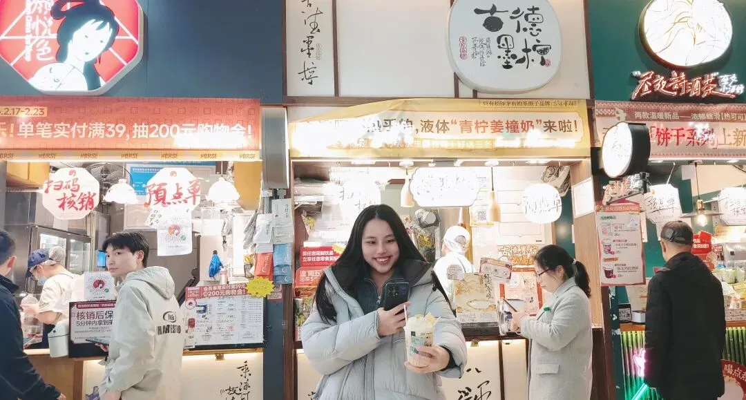 等位的时候娃去一楼买古德墨柠。娃说这个牌子的奶茶只有湖南有。娃点了一杯爱老虎油。名字听起来很怪,完全猜不出成份!娃说好喝,爱喝,这几天要常喝。