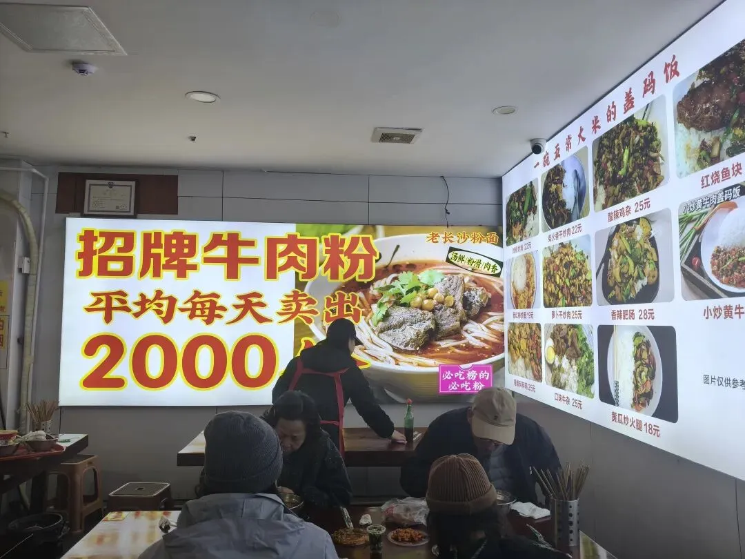 这时我们已经饿得饥肠辘辘,随着人流挤进一家粉面馆,他家号称光是牛肉粉,平均一天就能卖出两千份的。