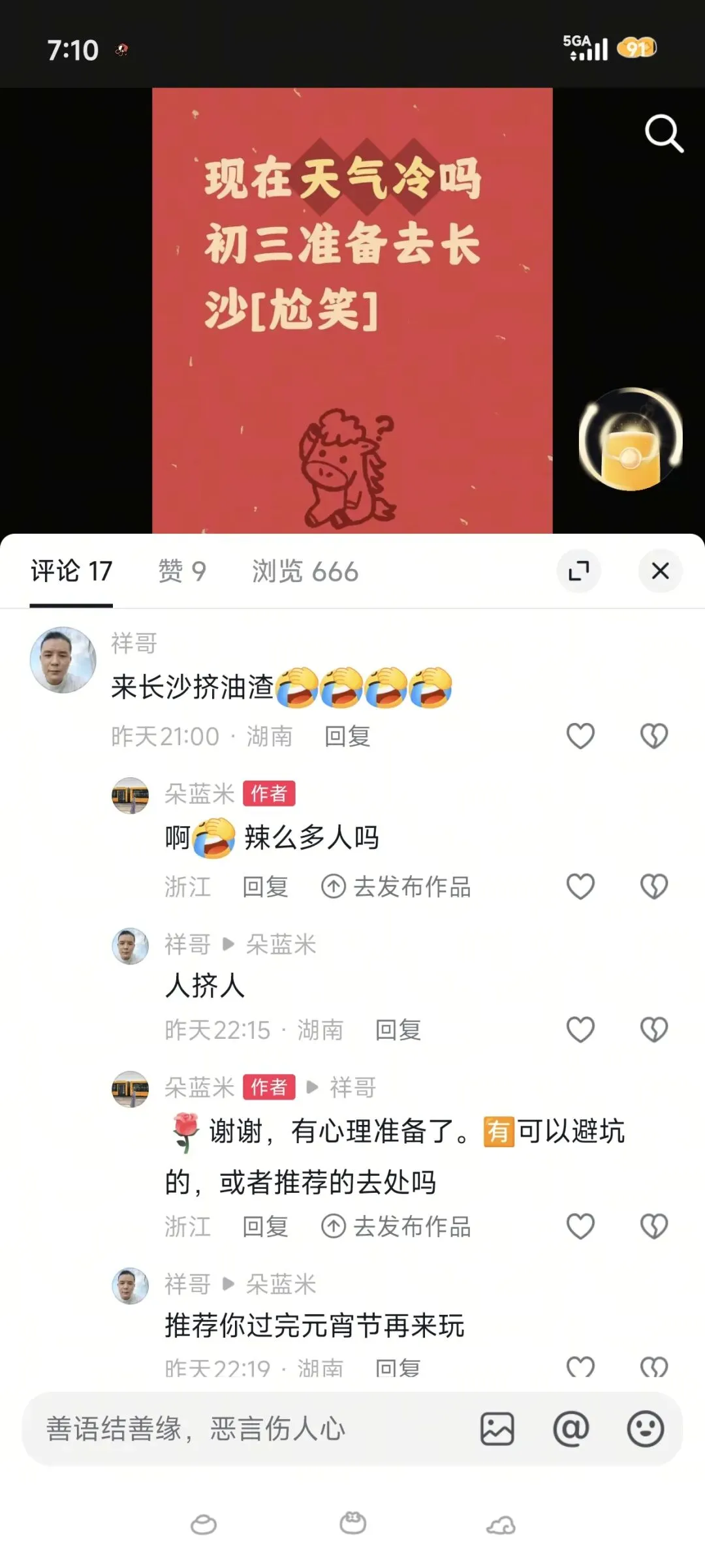然而,就在出发前几天,我这心里还是没底,尤其是对长沙这捉摸不定的天气。于是,抱着试试看的心态,在网上发帖问了一句:“长沙这几天穿啥呀?”