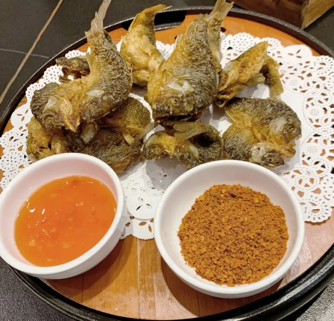 香酥禾黄鱼,炸得焦香酥脆,连鱼骨都可以一起嚼,对我来说不蘸蘸料就蛮好吃了,喜欢这个口感。