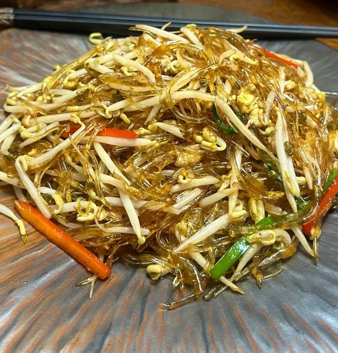风味粉丝,晶莹Q弹的粉丝跟鸡蛋、胖豆芽、韭菜、红椒丝一起炒,口感丰富,味道清新又入味,好吃。