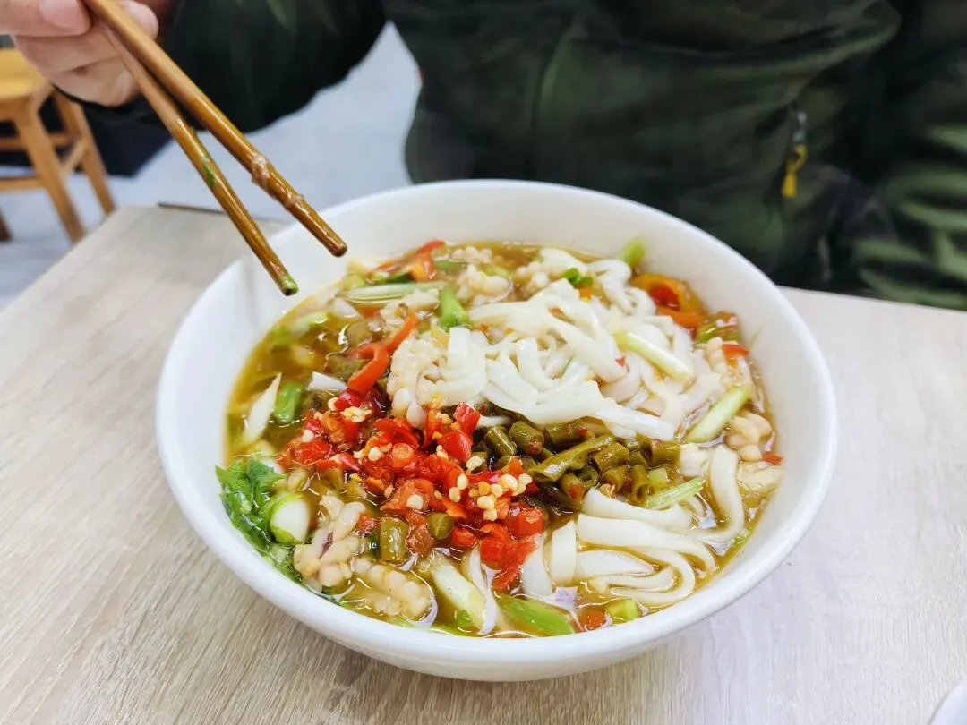 收拾好,我们便来吃早餐喽,吃了当地的鱿鱼粉还挺不错,16块钱一碗,我这个是香菇粉。