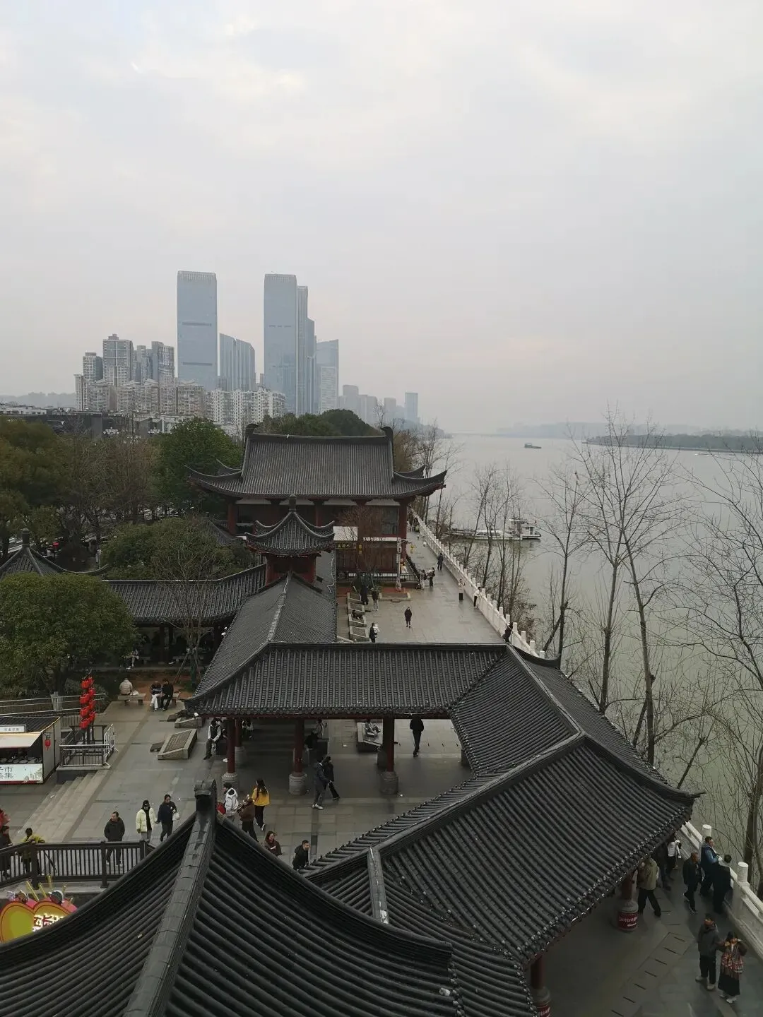 星城长沙,从天心阁到黄兴路步行街商业中心广场,到湘江边上的杜甫江阁,杜甫江阁码头。
