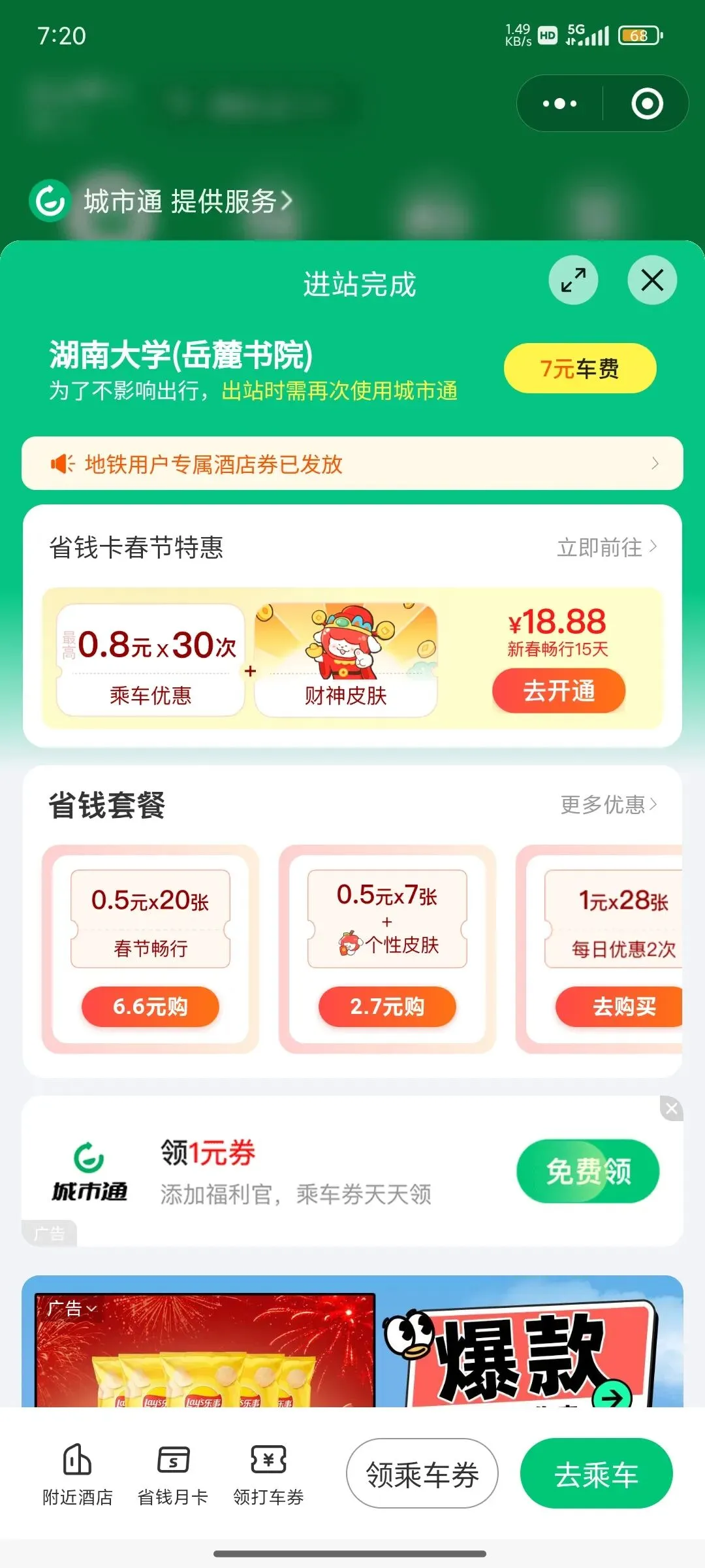 微信小程序,下载一个乘车码,开通下,坐地铁是非常方便的,还挺实惠的。看看这个单程价格。