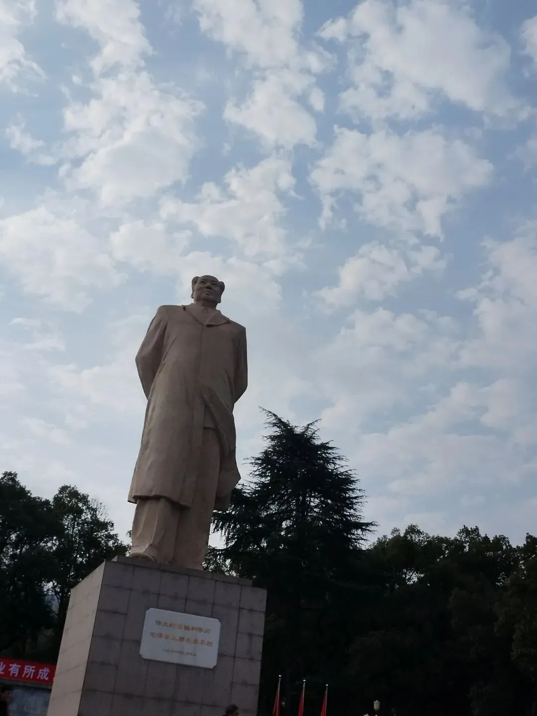 毛主席的雕塑🗿,左边进去全是美食,美食一条街。再往上走,岳麓山,一路上,两边的大树最是一年春好处。翠绿粗绿,高高大大。