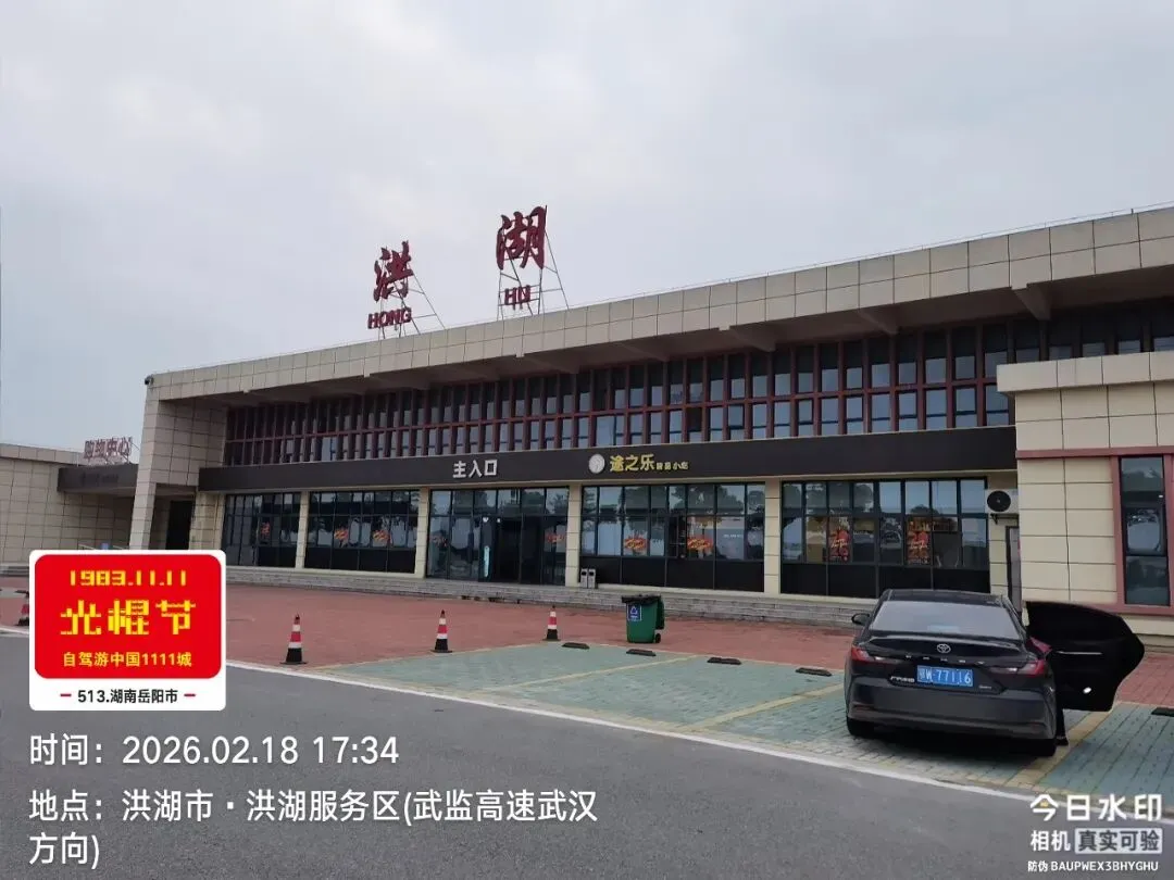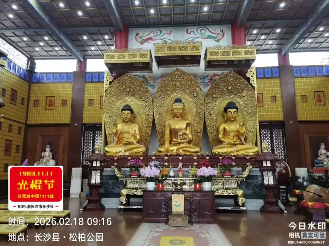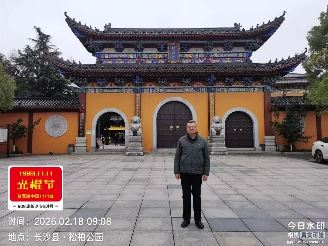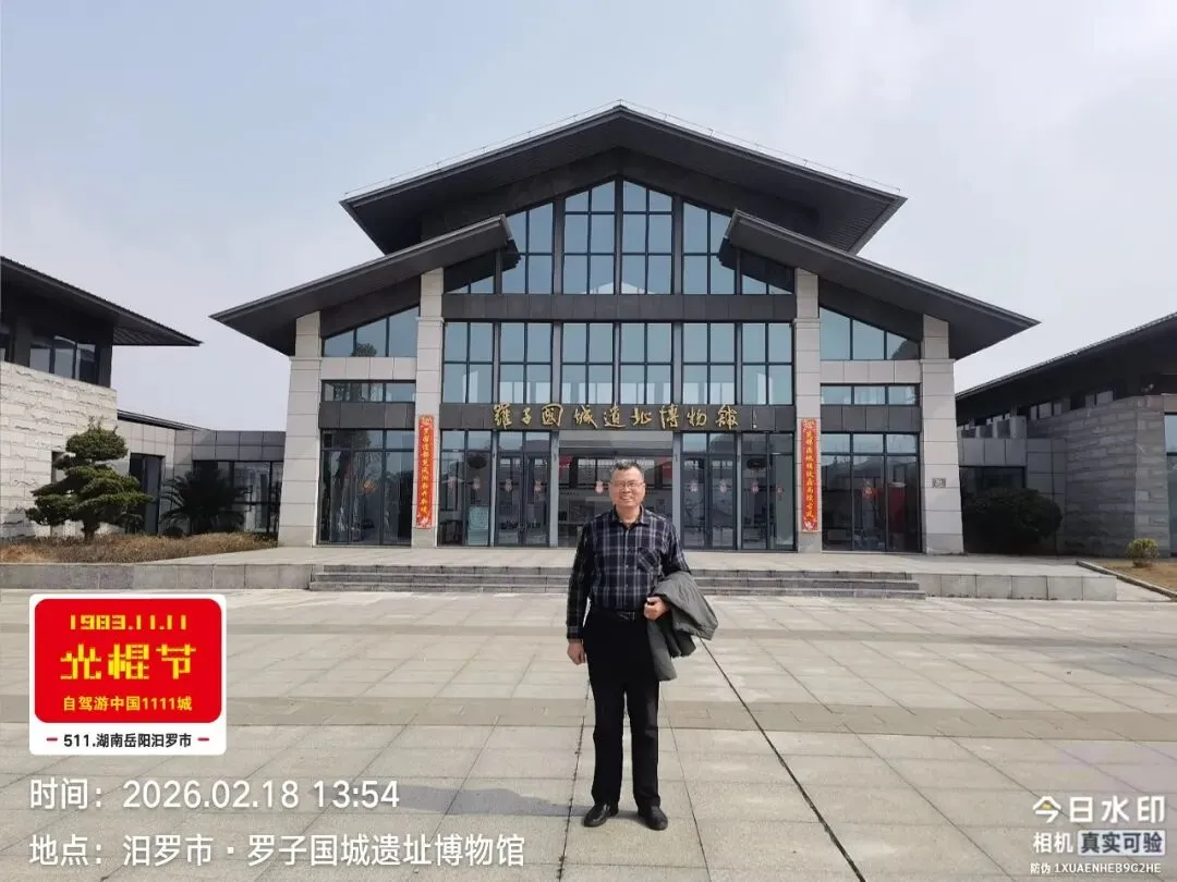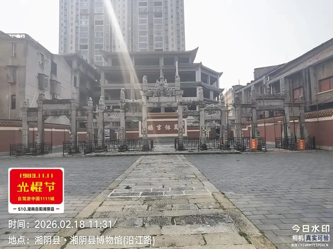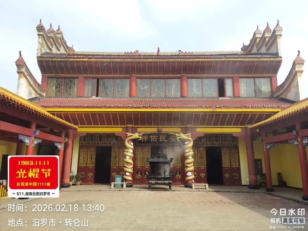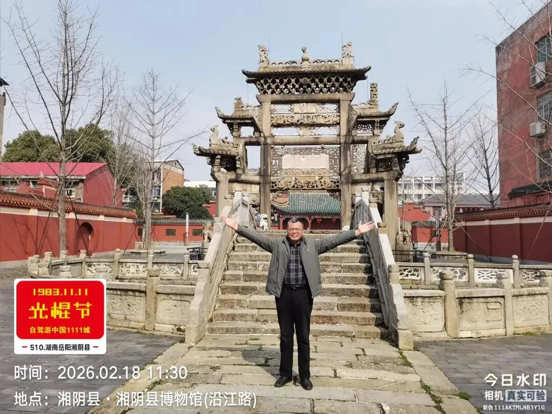 从侧门进入这座2020年重建的松柏寺,主轴线上天王殿、大雄宝殿、藏经楼一字排开,建筑宏伟。长沙县毕竟是个小县城,让我感到意外的是这寺里还有500罗汉堂,可以数罗汉。当然我没有数,人生已过花甲,世事早已看透。2024年国庆节期间和一群朋友开车来过湘阴县,当时去了湘阴文庙、岳州窑遗址博物馆、左宗棠文化园、左宗棠纪念馆等,就是没有来过湘阴县府,今天算是如愿以偿。湘阴县博物馆就设在湘阴文庙里面,因前年来看过,这次主要是带前年没来过的老婆来看看。虽然岳州窑遗址博物馆今天不开放,但我前年就参观过了,加上老婆对这不感兴趣,所以我们没有遗憾。前年国庆节期间也来过汩罗市,只是当时走的是另外一条路,没有到过县城,而是去的长乐古镇(回龙门)、屈子文化园等。在去“罗子国城遗址博物馆”的路上看见了转仑山,就停车下来看了一下,发现这也是一座庙。还看见了一对母女在此烧香求签问祸福。专程来参观“罗子国城遗址博物馆”,可它今天不开门,我有点遗憾。我是第一次来到岳阳县,可它的博物馆(新墙河抗战史实陈列)也没开门。我来过多次岳阳市,但去的是岳阳楼。首次是国庆节放长假的1999年,最近一次是2024年国庆节,当时那里人山人海,停车场都停满了,车子在距离岳阳楼景区几百米的位置开不动了。没办法,我们就去汩罗市了。今天本来想去岳阳楼故地重游的,手机一导航,通往岳阳楼的道路一片红色,还是算了吧。来到岳阳博物馆,这里除夕、初一、初二闭馆三天,明天(初三)才开门,看来还是无缘啊。我们在博物馆附近的洞庭湖旅游度假区(南湖景区)转了一下,看了一下。开车返回武汉时在高速公路“洪湖服务区”吃了一盒方便面,再开车回家。就结束了这次用时44天、新到达122个(城)市县、行程8646公里的“光棍节自驾游中国1111城”的活动。