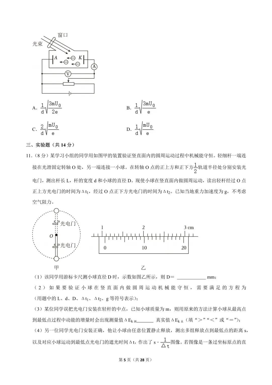 高三试卷|2025年湖南省长沙市麓山外国语实验中学高考物理一模试卷