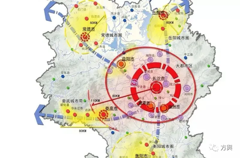 2021年11月,长沙市新型城镇化发展规划(2021-2025 年)发布,其中就有提及长沙县“撤县改区”、“长株潭一体化”等内容。其中提到在长沙城市群范围内,以长沙中心城区为极核,长株潭都市区为主体,推进长沙县撤县设区,周边区县(市)1小时通勤圈为重要组成部分,形成区域性城市空间聚集的大长沙都市圈。详细内容如下。🔺长株潭都市圈