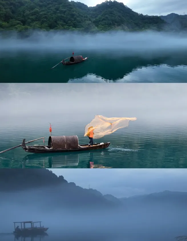 晨雾从江底往上升,像有人在轻轻呼气,遮住山,也藏住人。