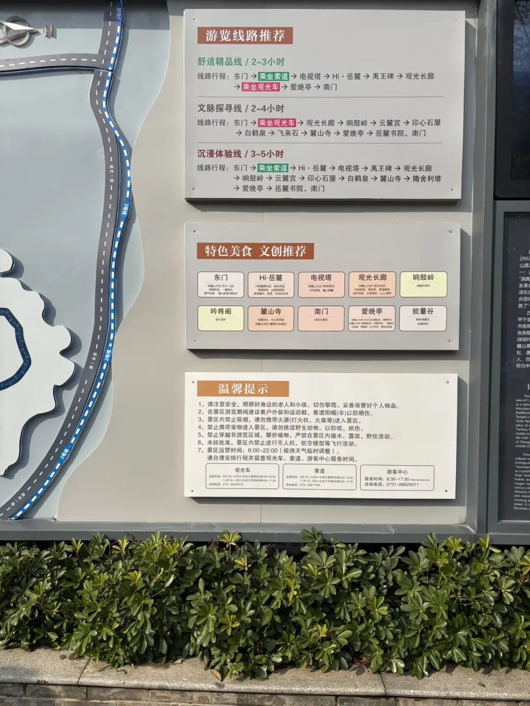 今天的行程是岳麓山,酒店贴心提供了去岳麓山的地铁攻略,延攻略走到的是东门,东门路口推荐了几条线路,我选择了第二条, 岳麓山像一个C 字型,起笔是东门,落笔是南门,如果注重历史文化的,从东门进来,然后坐观光车到观光长廊,然后下坡路往南大门方向走,有两个优势:1.东门/南门都熟悉 2. 历史渊源的地点都基本集中在观光长廊到南门这一段,边走边感受这座“名山”受欢迎的原因.