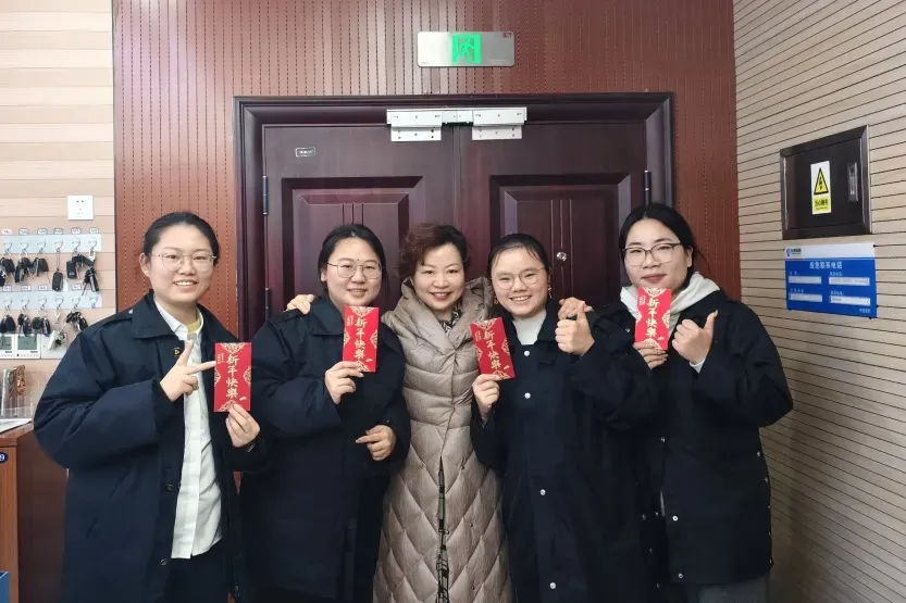 坚守有温度,关怀暖人心。除夕当天,公司党支部书记、董事余莉莉先后来到公司接警中心与浦发银行长沙分行值守中心,为坚守在一线的员工送上值班备勤物资与新春的美好祝福。她表示,公司是大家最坚实的后盾,会全力做好各项后勤保障,让一线值守的同事们暖心值守、安心工作。希望大家继续以高度的责任心做好节日期间的安防值守工作,以专业、高效的服务筑牢安全屏障,用坚守诠释初心,用担当守护团圆。