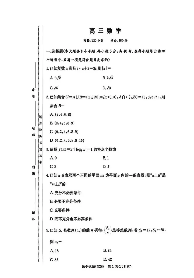 >湖南省长沙市一中2026届高三月考试卷及答案