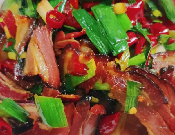 推荐菜:大蒜叶炒腊肉这道菜在临湘是家常里的顶流。做法不难,但讲究火候。腊肉得先煮后切,切成薄得透光的片。锅里不放油,先下腊肉煸炒,直到肥肉部分的油脂滋滋冒出来,边缘卷起"灯盏窝"。这时候,一把大蒜叶丢进去,猛火快炒,淋一圈米酒。出锅时,腊肉的烟熏味裹着蒜香,能让你多吃两碗饭。