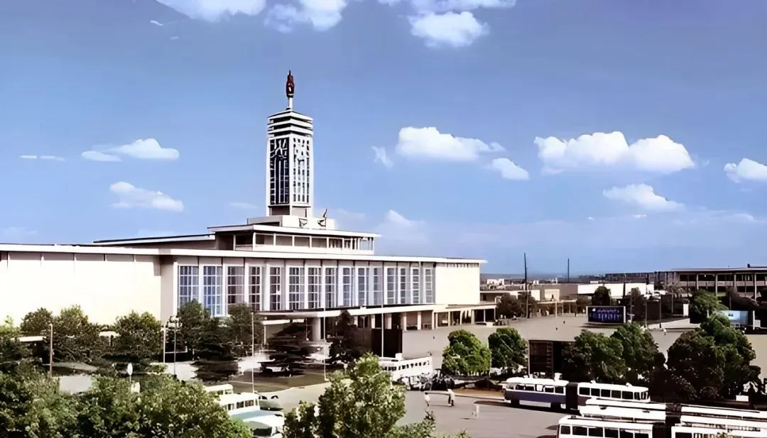 图中这栋气派的车站叫长沙火车站,楼顶那根通红的火炬,长沙人都爱叫它红辣椒,远远一眼就认得,候车大厅玻璃窗一排排亮堂堂的,站前广场公交白绿相间,爸爸说那会儿叫火车新站,不是东站,买张硬座票揣兜里,清晨的汽笛一响,整座城都跟着醒过来。