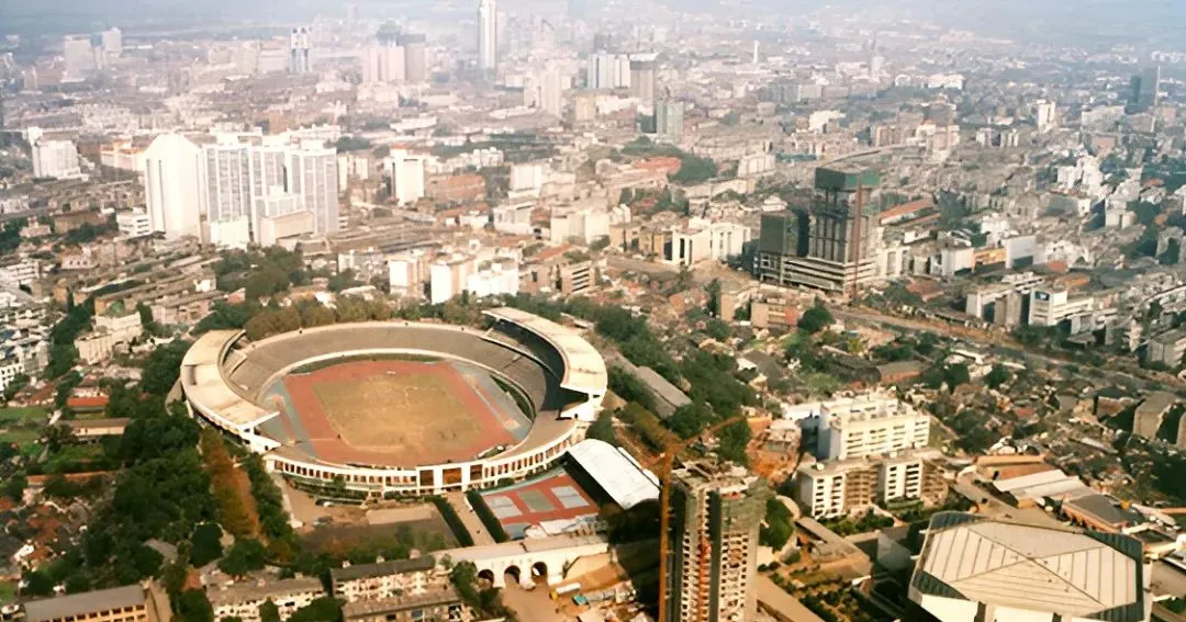 这个大圆盘样的就是贺龙体育场,跑道砖红,看台像浪花一圈圈围住,八十年代的比赛日,人从四面八方涌过来,售票口排得老长,叔叔挤在人群里喊我别乱跑,等进场鼓点一敲,热血就跟着上来了。