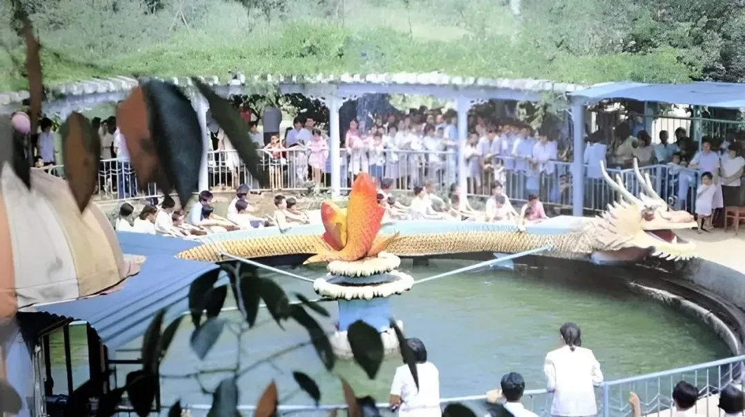 这条绕池游走的金龙就是当年烈士公园的游龙戏水,绳索一牵,龙身就伏低又昂起,孩子们笑得直拍栏杆,偶尔水花溅到脚背,凉得一个激灵,等回家鞋袜还带着潮气。