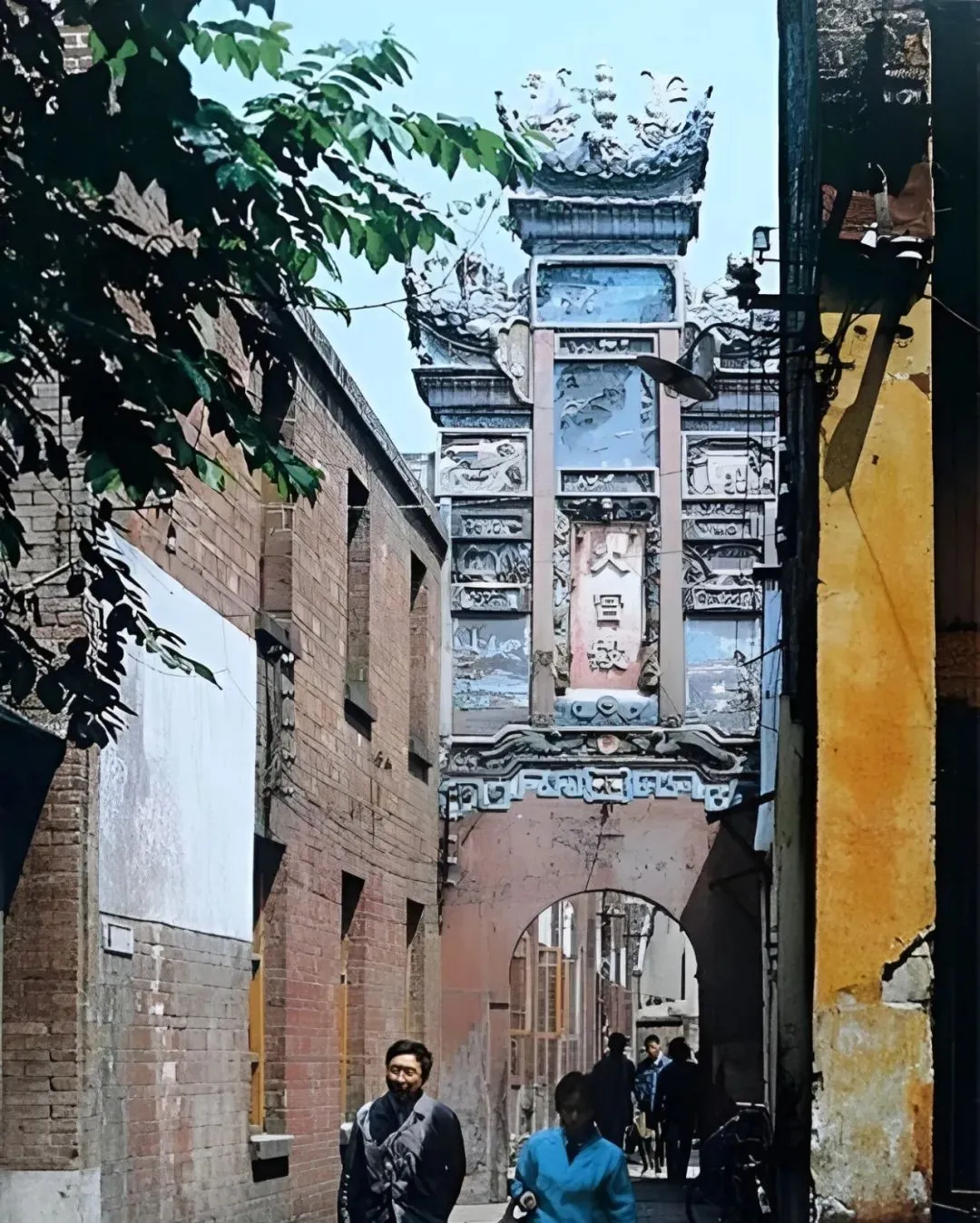 这口窄巷尽头立着的牌楼,砖缝里长了点青苔,门洞不高,推着自行车的人得低一低头,巷子里剥花生的声响,和楼上收音机的评书,今天想听也难啦。