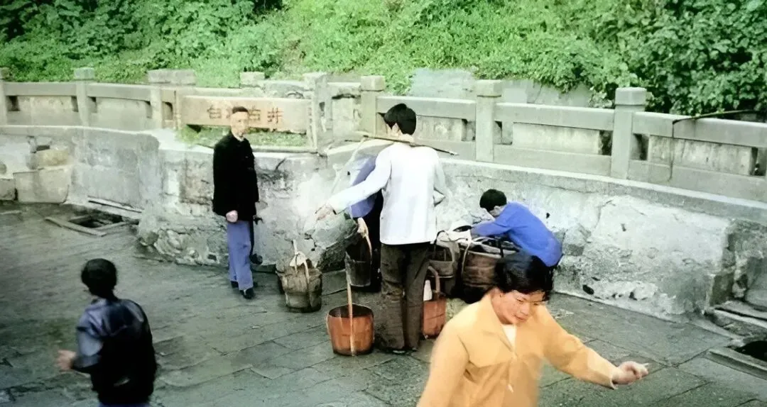 这个石栏围起的地方叫白沙古井,井口不大,水却清亮,木桶吱呀一声放下去,提上来沿着桶箍嗒嗒滴水,邻居大哥肩上担子一颤一颤,笑说这井水泡茶才出味。