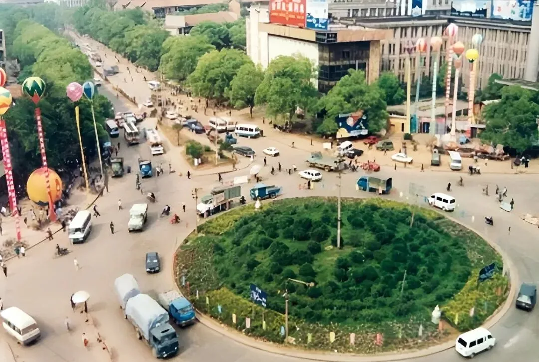 这片圆圆的绿岛是东塘广场老转盘,四面八方的车往里拐,再从另一边滑出去,彩球高高挂着,像节日永远没散场,后来转盘拆了,道路更宽更快了,可照片一翻还是想起当年骑车在圈里绕两圈的笨拙样子。