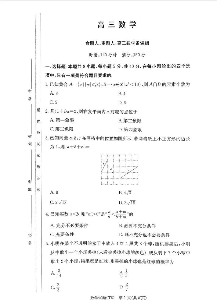 >湖南省长沙市湖南师范大学附属中学2026届高三月考试题及答案