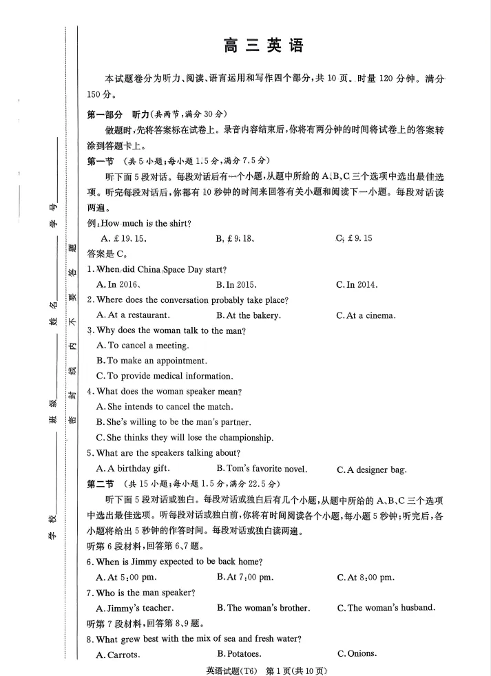高三试卷二维码: