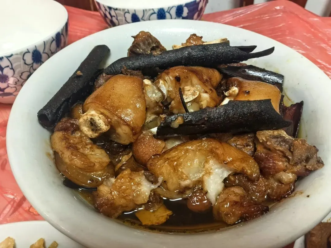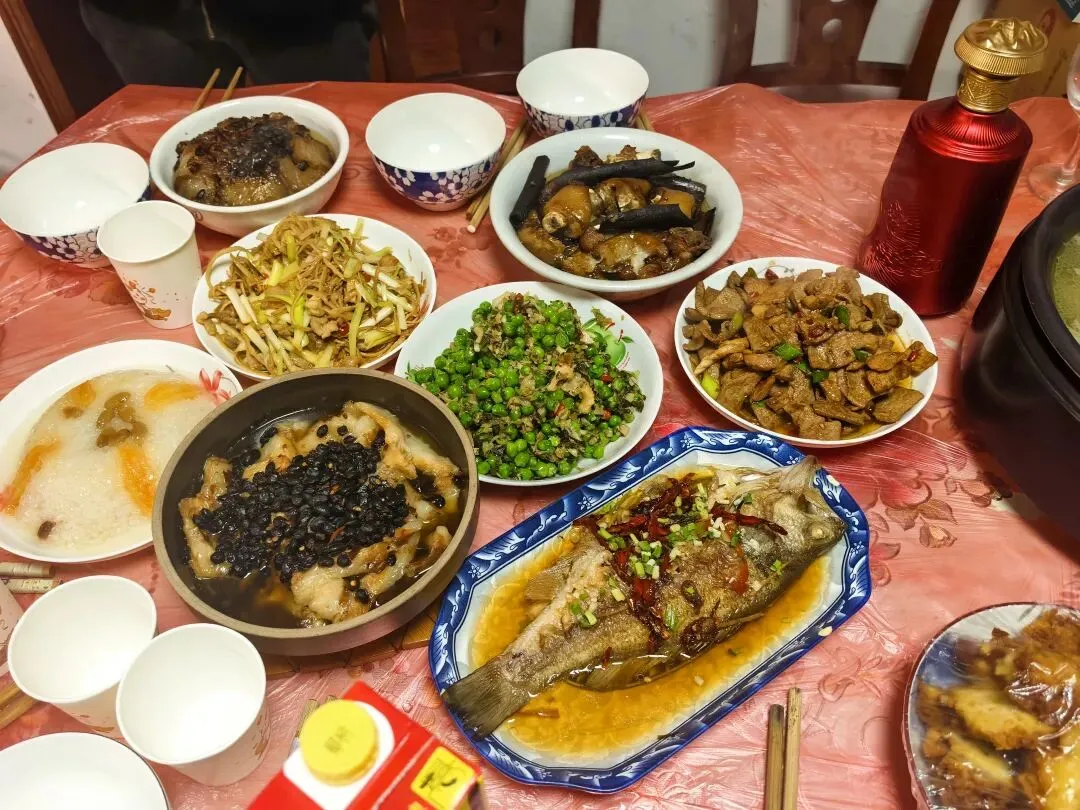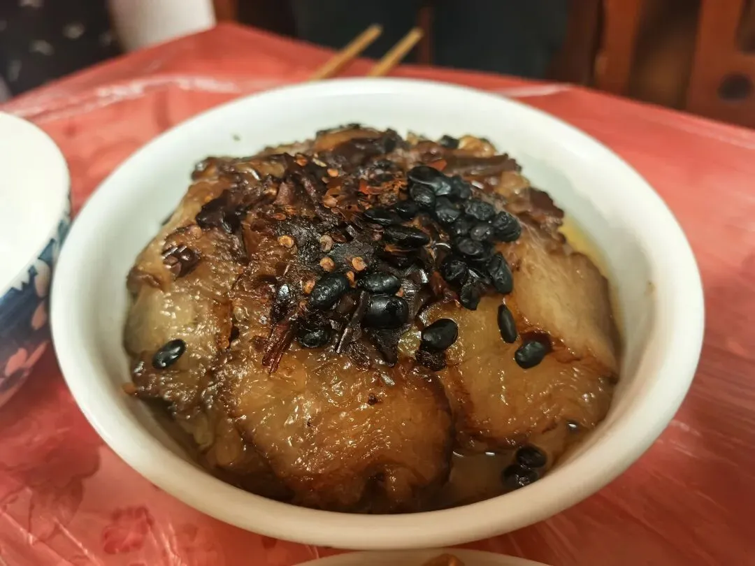 晚上恰饭,扣肉!真的是扣肉嘞,我上一篇就讲了,基本上老长沙屋里过年恰饭,哪一家少得了国碗硬菜?家家必蒸,户户必备,少哒它就不叫过年!虎皮扣肉是油光发亮,肉蒸得酥软入味,猪油香浸得透香滴,筷子一夹,入口即化,一点不油腻,拌到饭里呷,那是个长沙别都可以恰几碗饭~最有意思的每家做的扣肉味道会各有千秋。