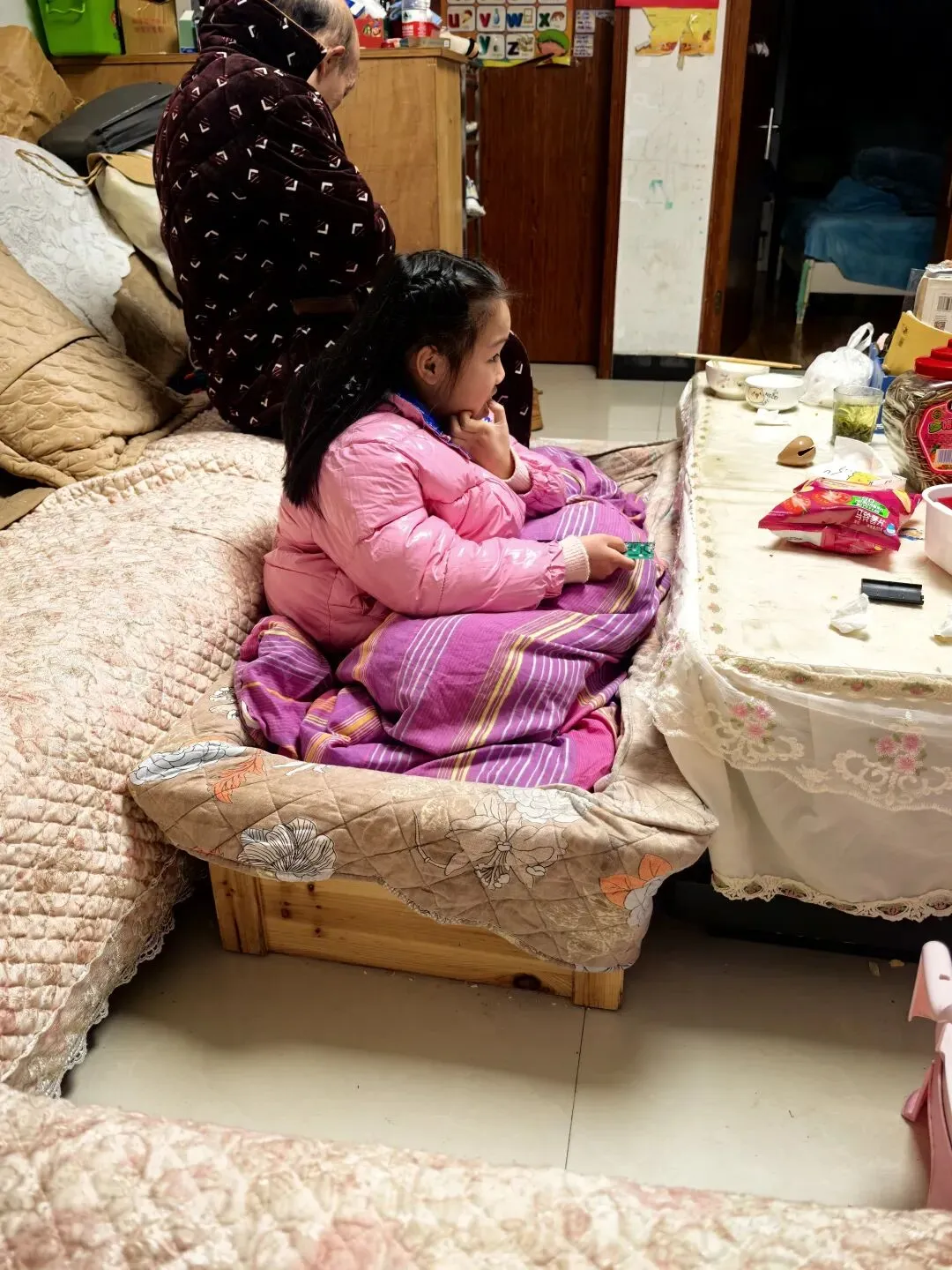 恰完满桌子好菜,姨妹子就要把你架火上烤了,哈哈——围哒电烤火盆烤火!这可是长沙人过冬的续命神器,不管大人细伢子,往火盆边上一坐,腿一伸,人一靠,干脆直接坐到火盆里头,暖意从脚底板直冲天灵盖,外头再冷的风,都跟我冒得半毛钱关系!