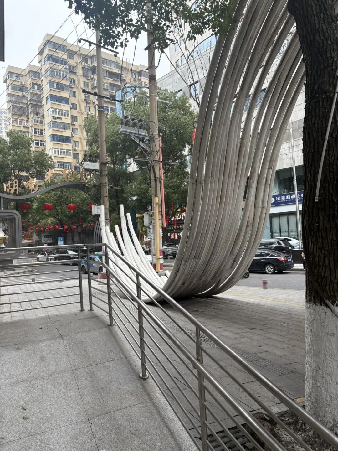 登阁顶,对面湘江中心的橘子洲头青年毛泽东石刻雕清晰可见。看完下楼,出口处门拍了一个几近变形的自拍照,原路返回,city walk 全程超过1W 步,下午还要打卡湖南博物馆,赶快回去补给体力,费腿的一天~