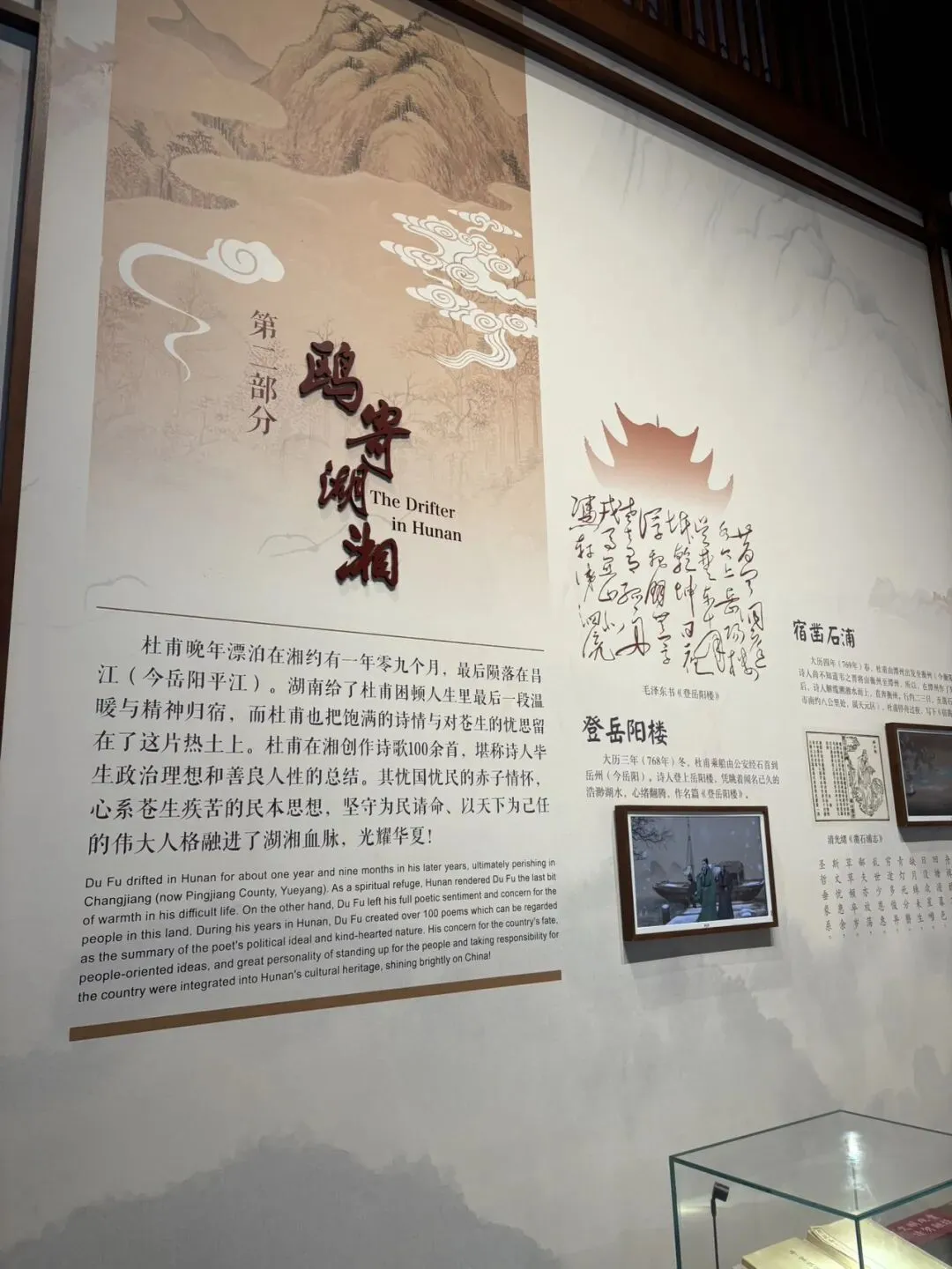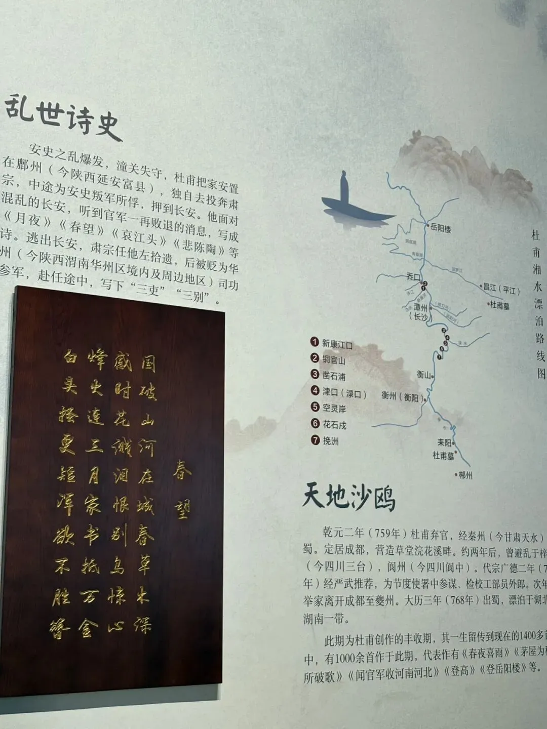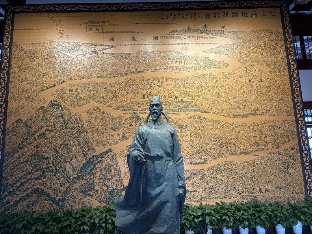 湘江中路过来看到的文和友,这个时候才上午10点多,排队取号的人都已经老长了,这一口是非吃不可了.看买票进来,江阁的起源是杜甫人生最后两年到潭州投靠友人,没想到有人已过世,杜甫只能租住在湘江边一个破旧的吊脚楼里,1000多年后,长沙人民在这个城市最中心的位置给他建了这个7楼的“别墅”.杜甫的生平介绍,从少年壮游,到中年潦倒,也是那个强盛的大唐因安史之乱而迅速衰败的王朝的写真。