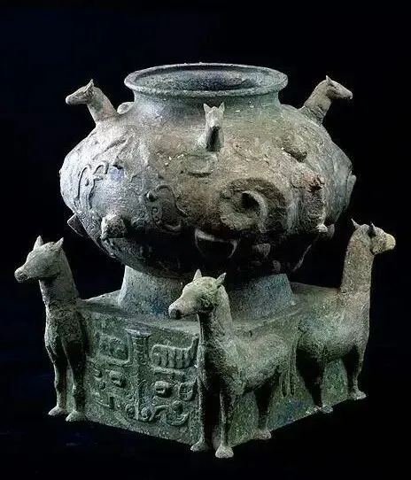 无独有偶,1982年春,益阳桃江县一位农民建房挖地基时,意外发现一件四马方座铜簋。它就是著名的马簋,器身饰圆雕和浮雕的卧马,器座四角饰四匹立马,都是首次发现,在北方西周铜器中从未见过。高至喜老师认为它应是在湖南本地铸造,属于西周中期湘中地区古越族的器物。