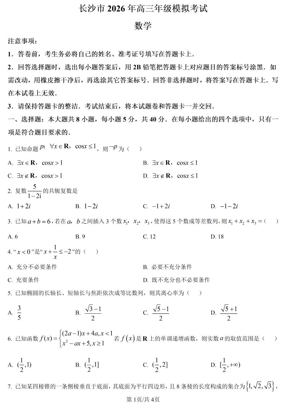 1.我用夸克网盘分享了「湖南省长沙市2026届高三模拟考试数学试题(原卷版).docx」,点击链接即可保存。打开「夸克APP」在线查看,支持多种文档格式转换。