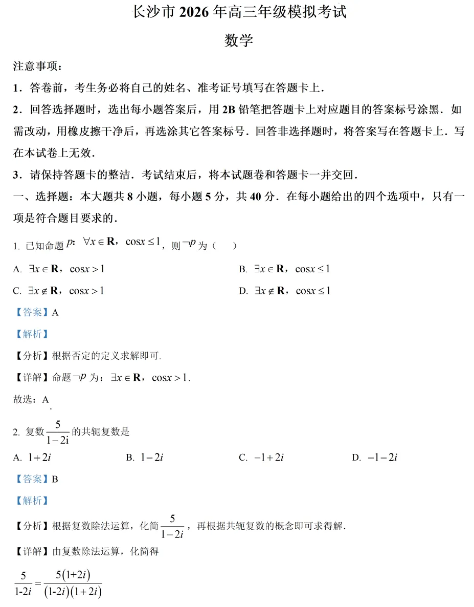 2.我用夸克网盘分享了「湖南省长沙市2026届高三模拟考试数学试题(解析版).docx」,点击链接即可保存。打开「夸克APP」在线查看,支持多种文档格式转换。