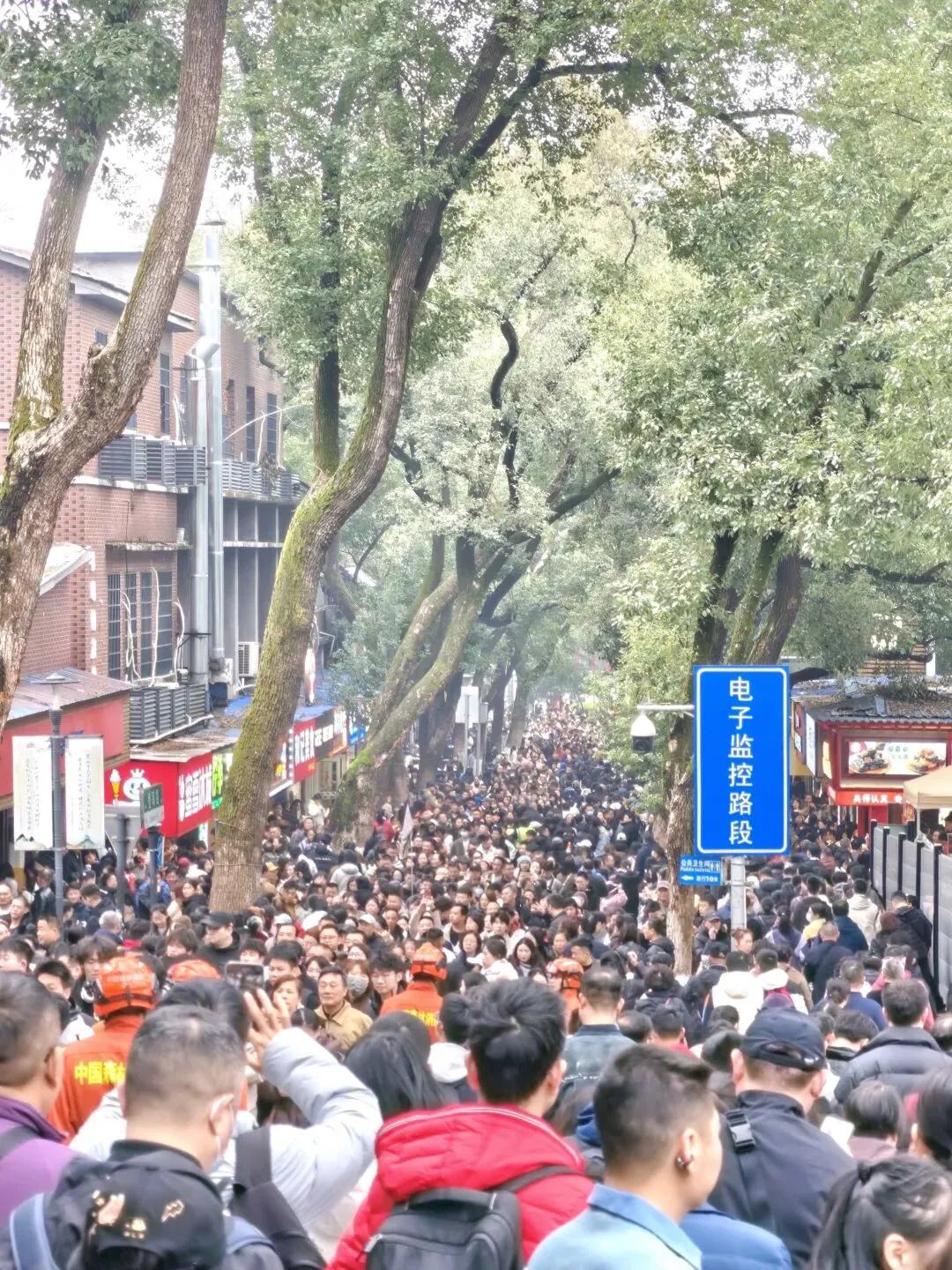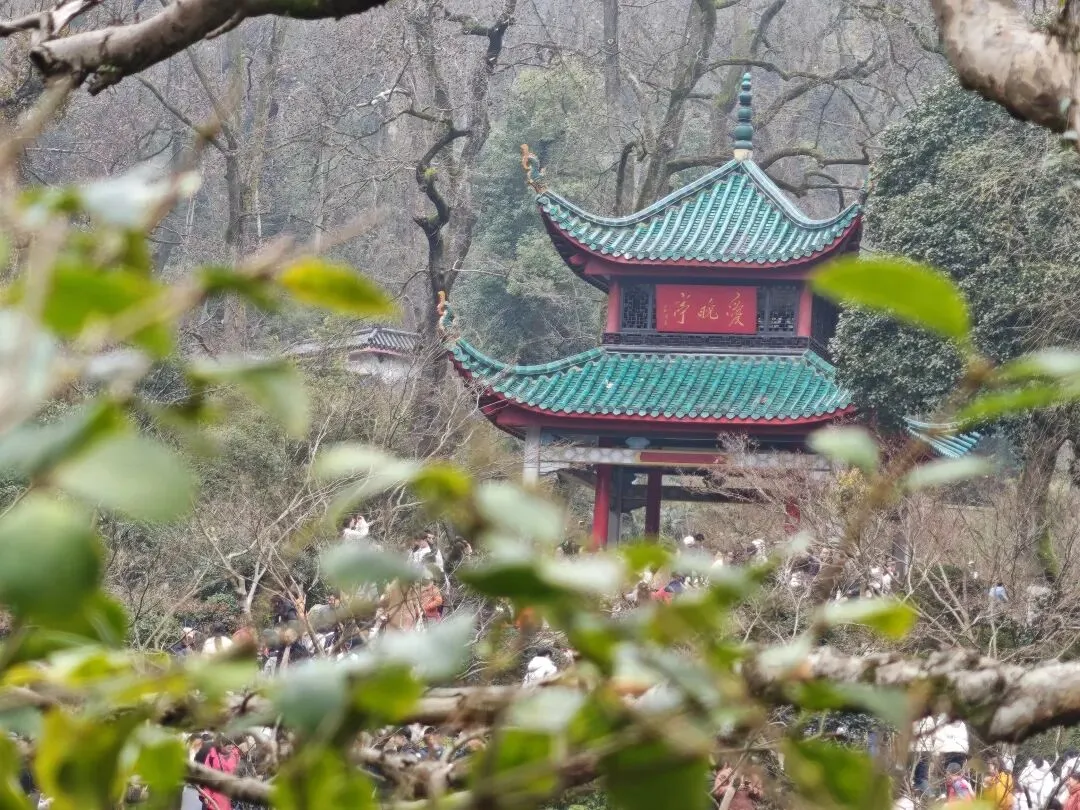 终于挤到爱晚亭。说实话,风景嘛——就那样。一个亭子,一汪水,几棵树,普普通通。可就是这样一处“就那样”的风景,人们一批接一批地往里涌,想近距离看一眼?门都没有。远远地举起手机,咔嚓一张,完成“到此一游”打卡任务。
