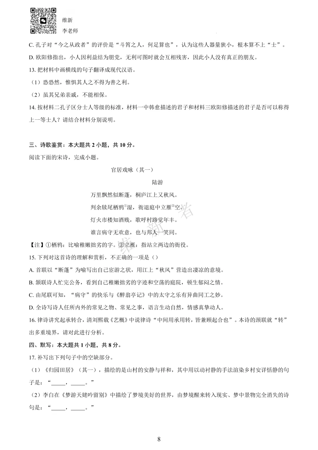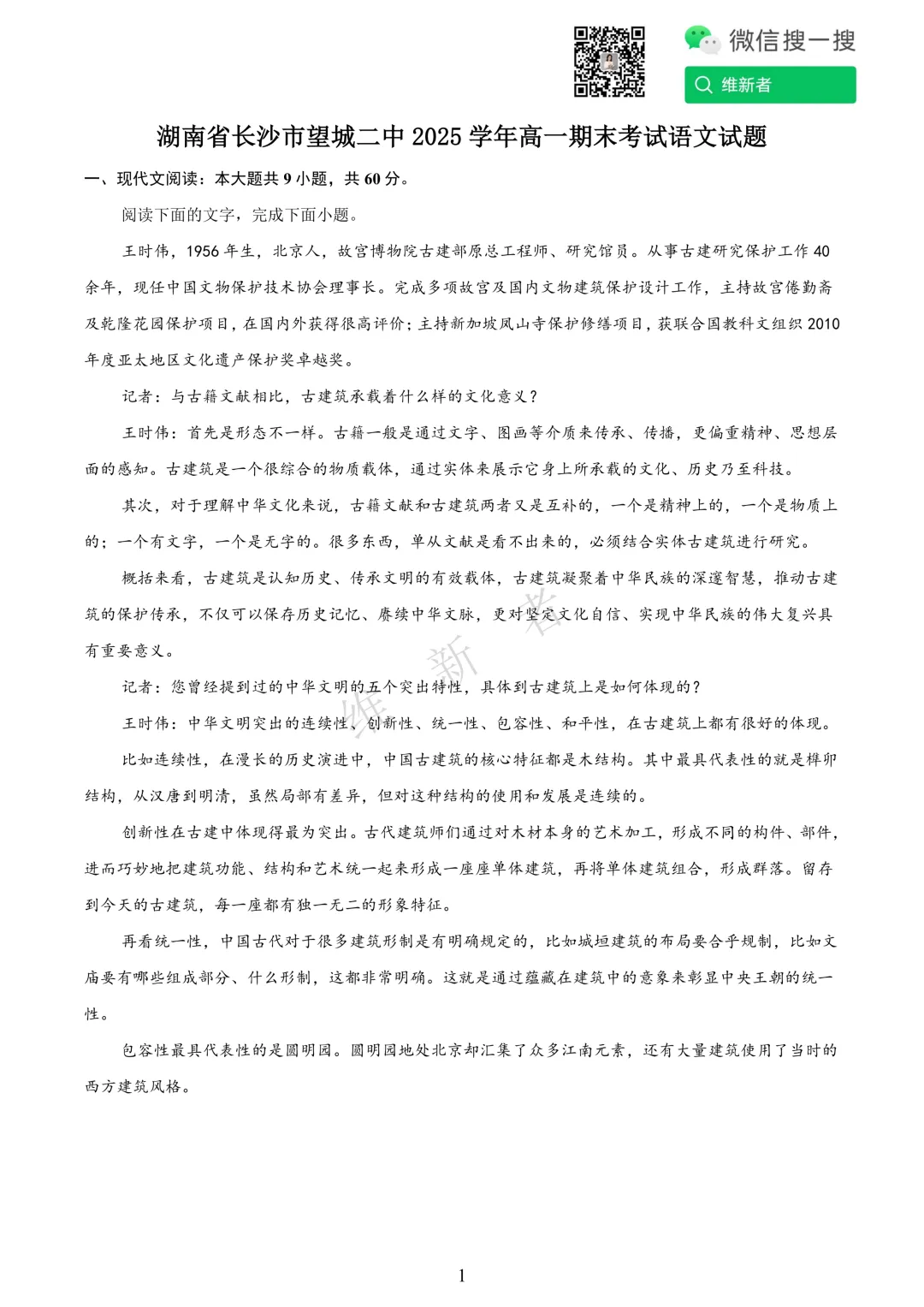 维新者致力于收集和整理各大名校试题,帮助您省心省力获取各类优质的试卷与教辅资源。我们这次带来的是湖南省长沙市望城二中2025学年高一期末考试语文试题及答案,希望能够有助于您孩子的学习。