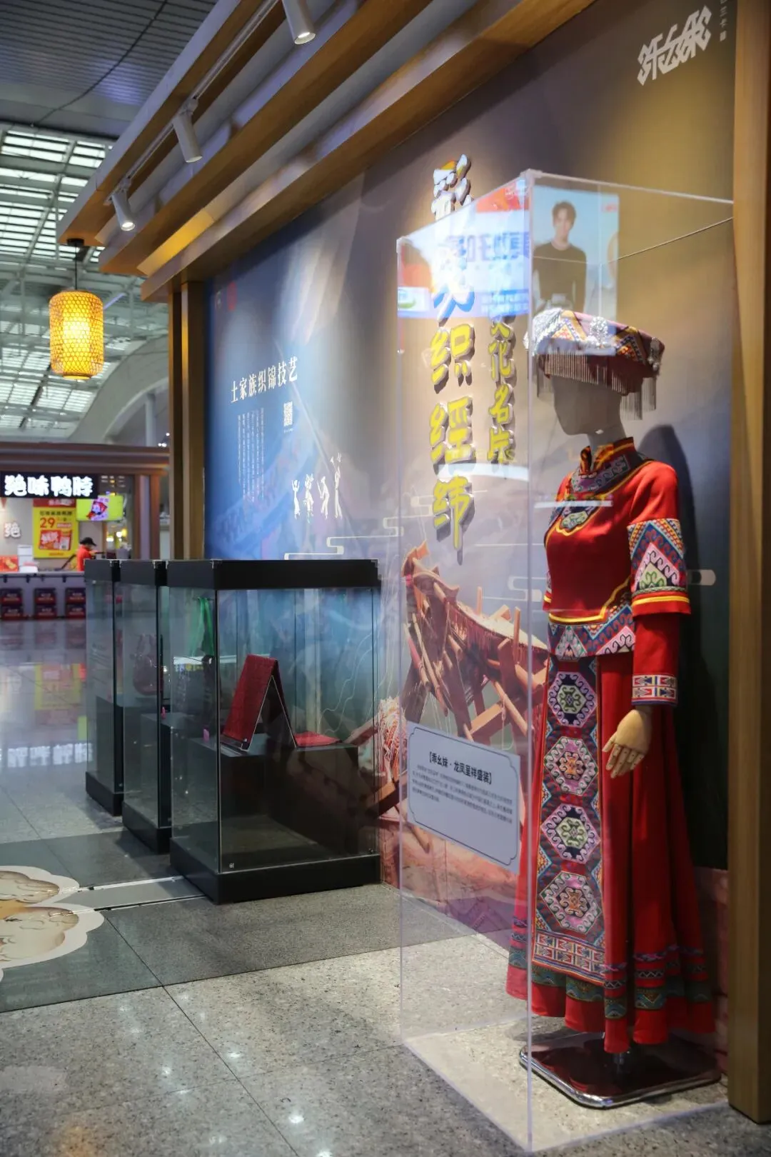 本次展览以“城市门户+交通枢纽”为平台,精选湘绣、湘西苗绣、苗画、侗锦织造技艺、土家族织锦技艺、长沙窑铜官陶瓷烧制技艺、黑茶制作技艺、女书习俗等近20个湖南非遗代表性项目,通过图文、实物与场景化语言,生动呈现湖湘非遗的技艺之美与文化内涵,給南来北往的旅客打造了一场沉浸式的湖湘文化体验。