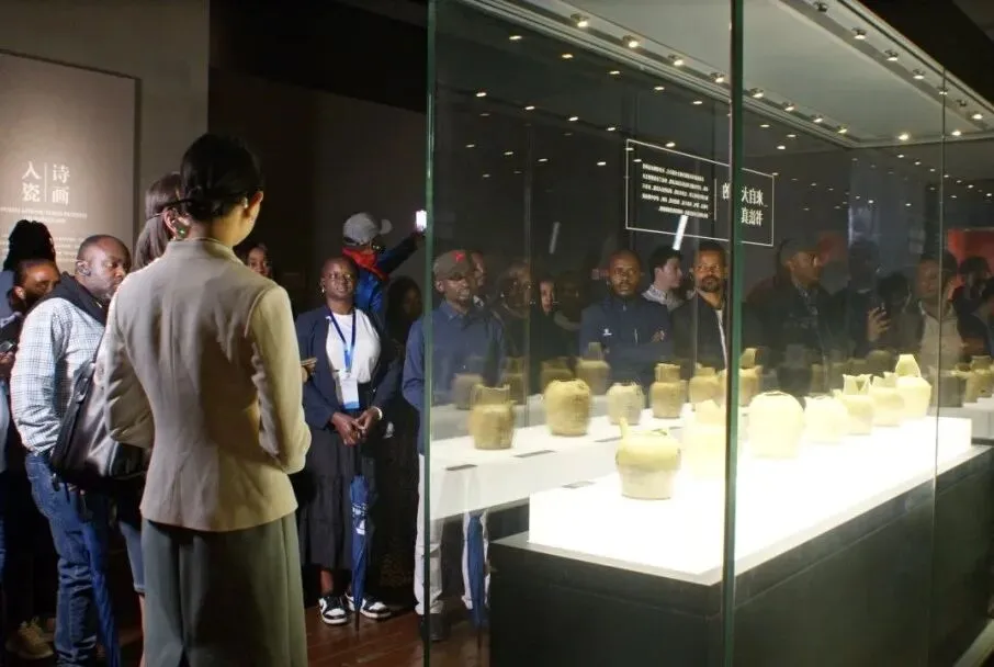 各国媒体团在长沙铜官窑博物馆参观。
