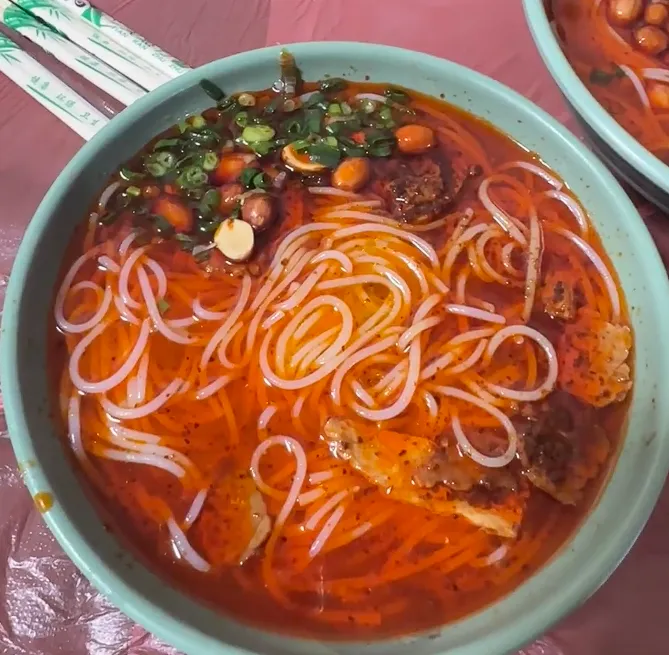 【青树坪米粉】做法速写:这粉讲究“干”与“红”。选陈年早稻米做的干圆粉,煮软后沥干。碗底不加汤,直接给一勺秘制的红油辣酱,那是灵魂。码子上必须是煮得烂熟又透着嚼劲的瘦牛肉片,再撒上一把炸得酥脆的红皮花生。拌匀了吃,每一根粉都挂着红油,干香热辣,一碗下肚,通体舒泰。
