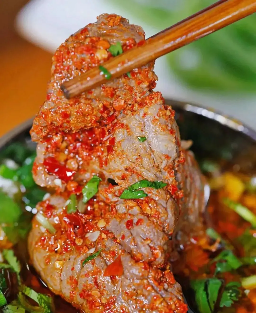 这家火锅在长沙开了20多年了,名气很大。他们家的那个牛肉上面全是辣椒,看着就火辣辣的。吃起来特别紧实,辣得我一直找水喝,但是停不下来。