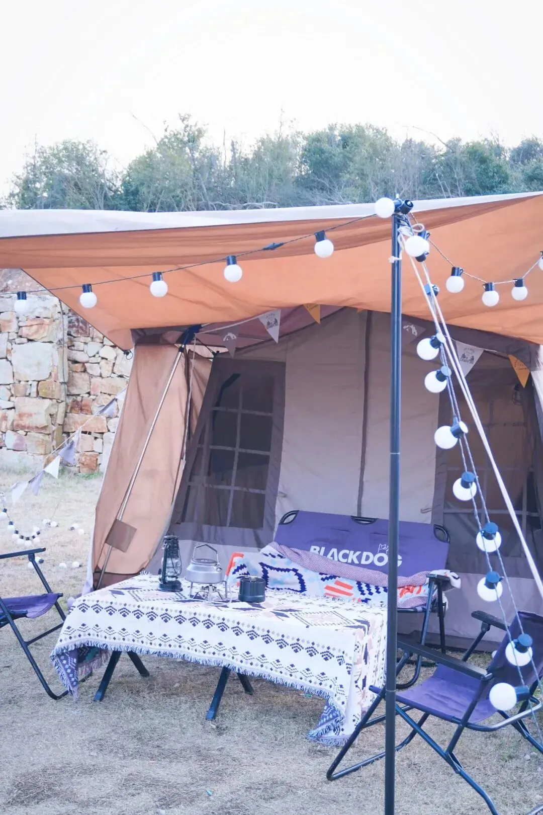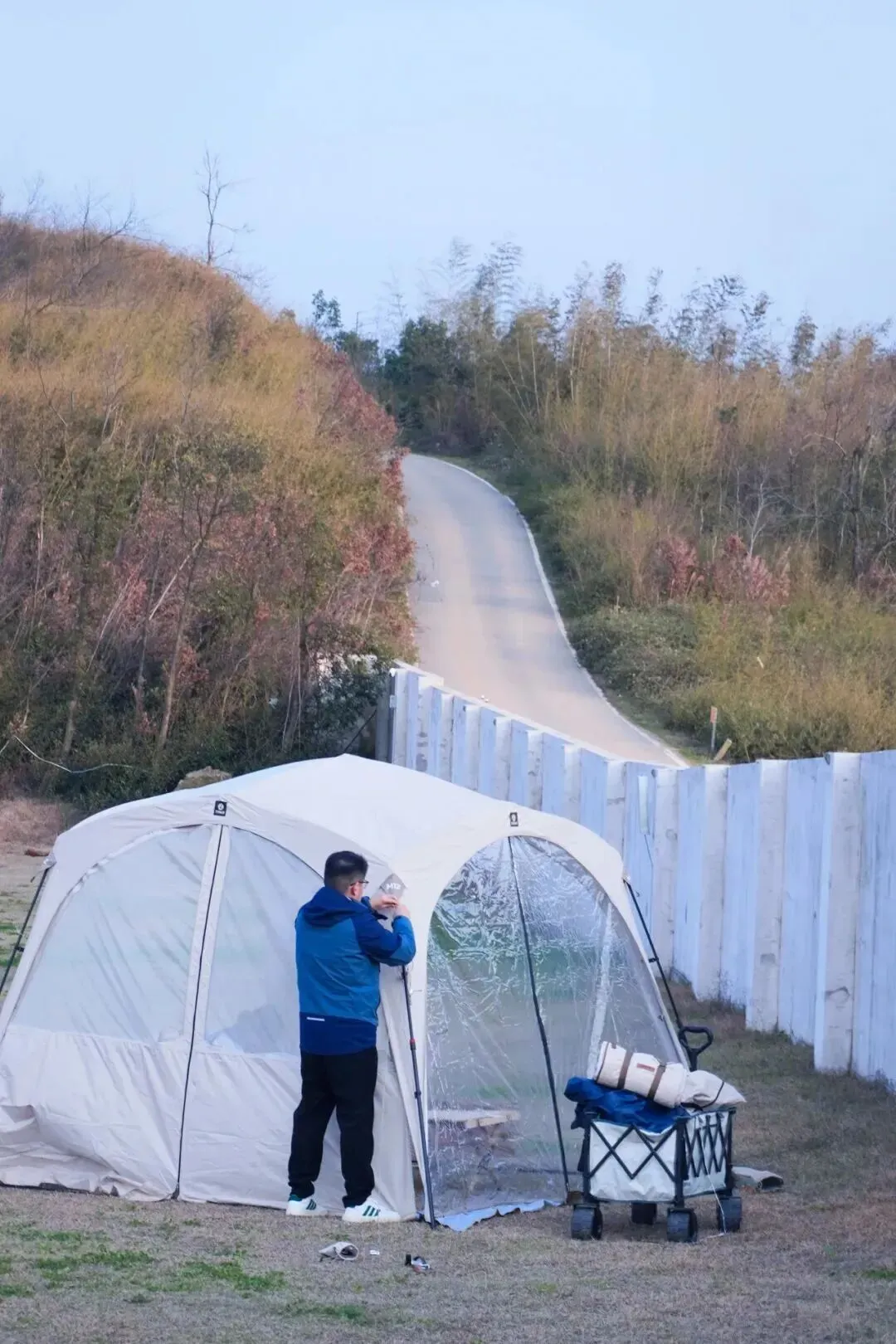 在山间露营,少了几分喧闹,多了几分“森”气,风从山间穿梭而过,拂过湖面泛起点点涟漪,带着草木的清新,远处古寺若隐若现,宛如一幅淡雅的水墨画。