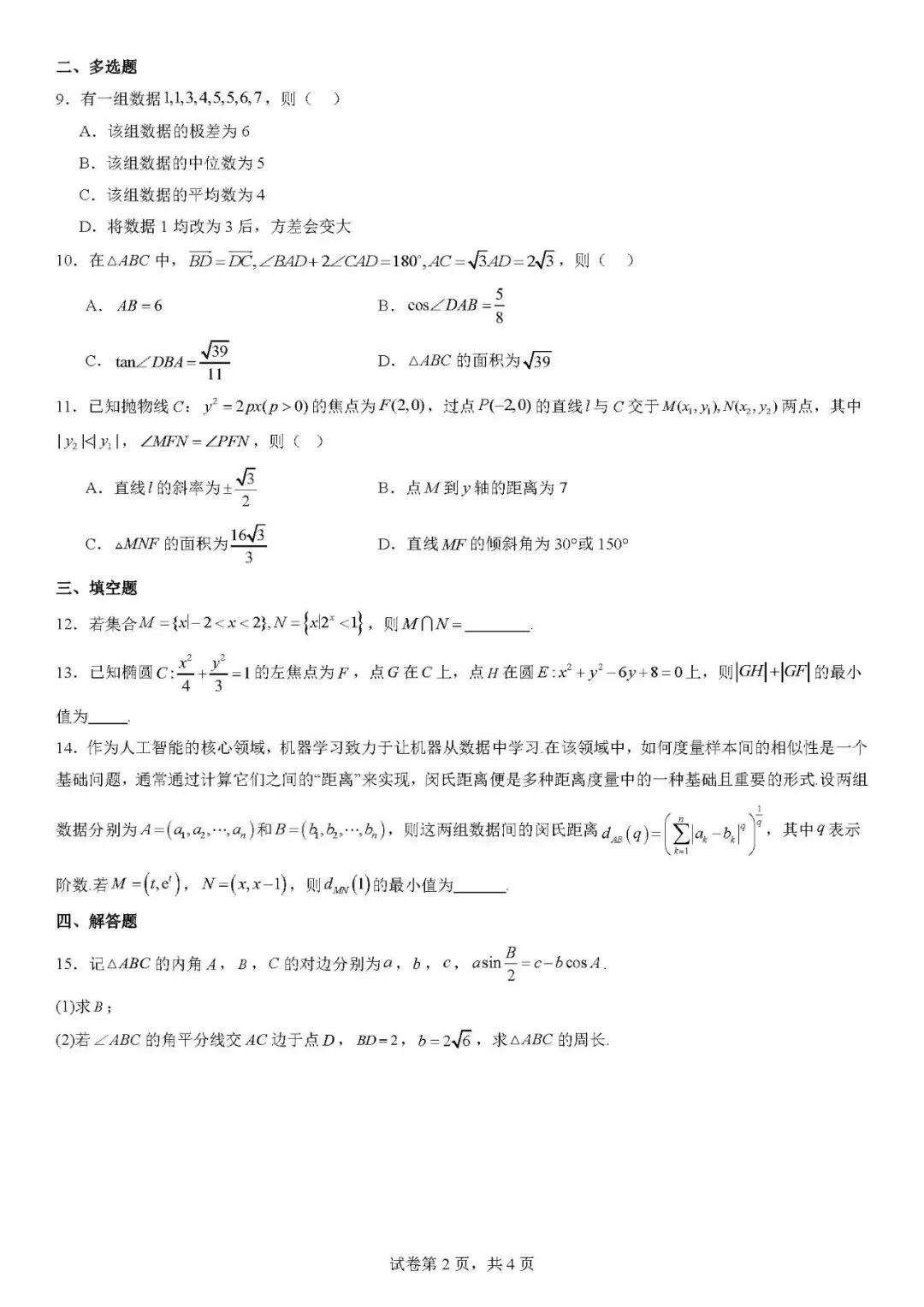 【34】安徽省皖南八校2026届高三上学期第二次大联考数学试题