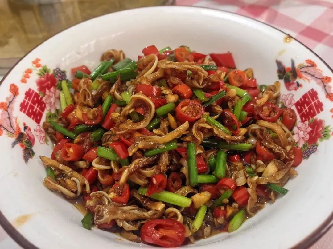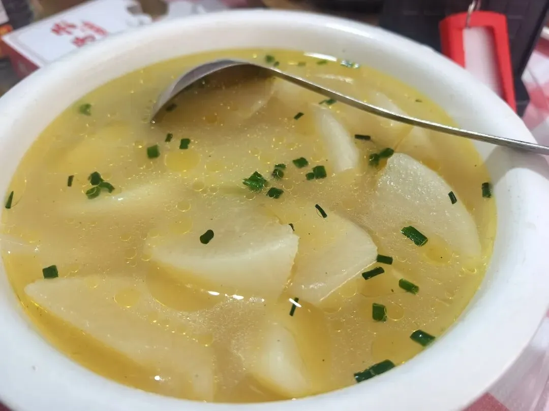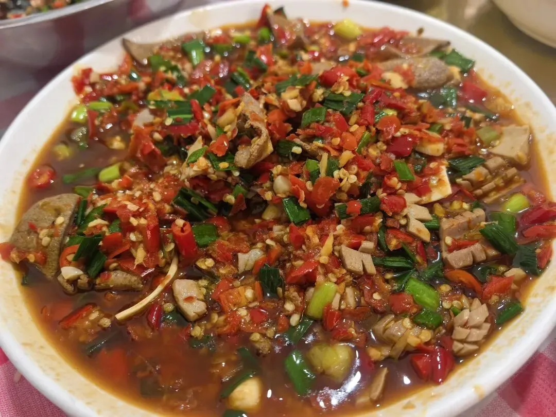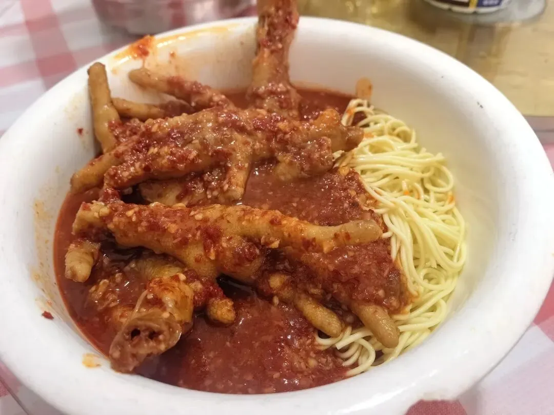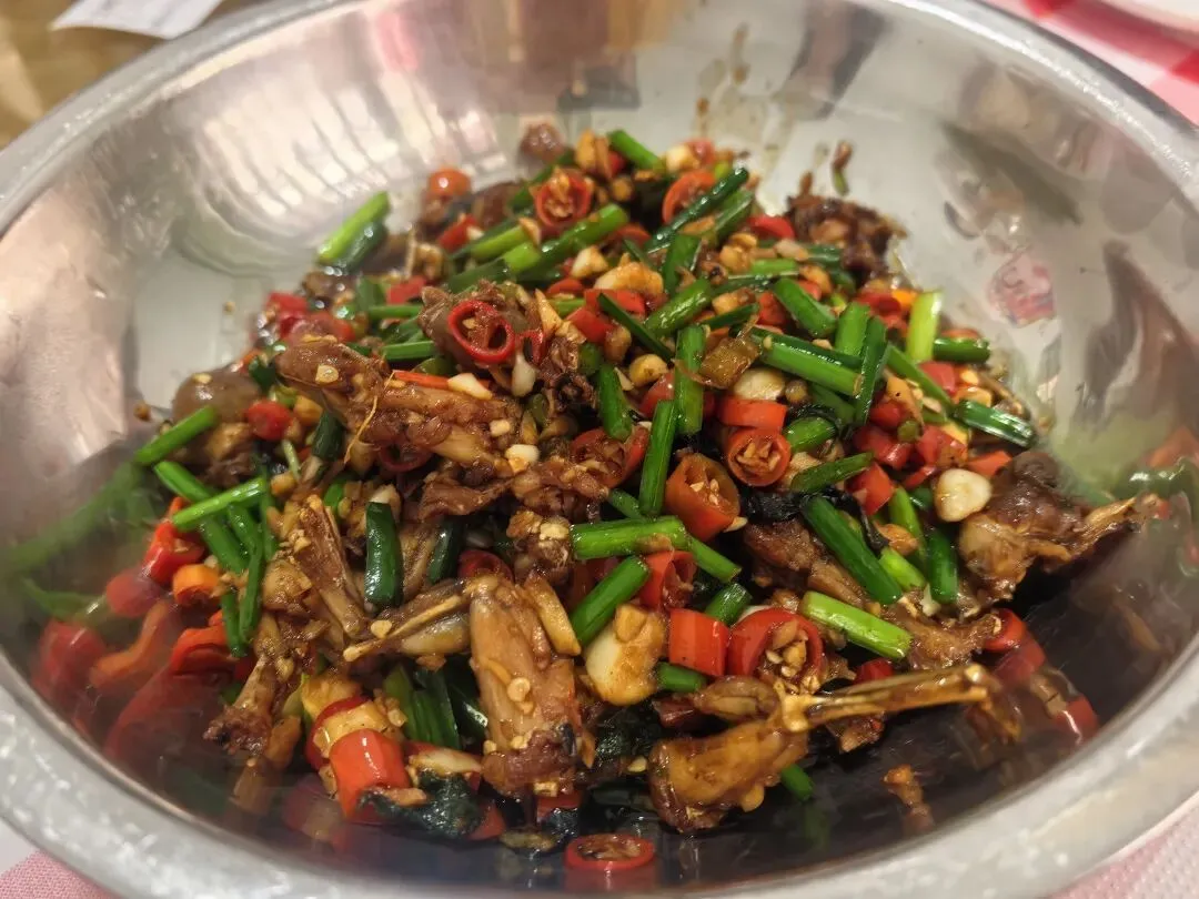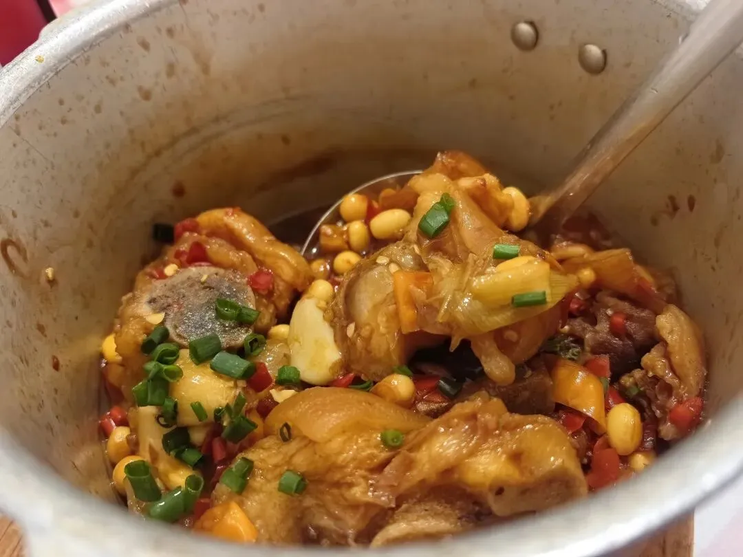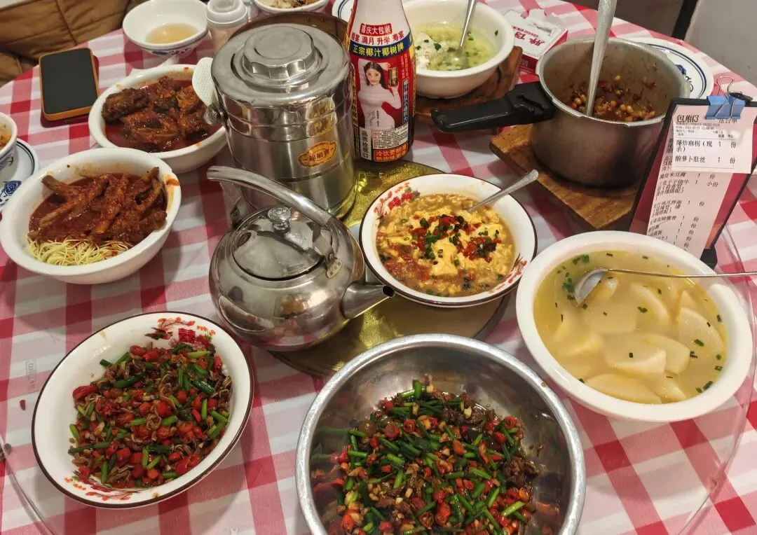 记忆中小时候过年基本都是在家或者亲戚家吃饭,长沙基本是空城啦。没想到如今过年商场一整个人满为患,饭店基本都是大排队啊!朋友一起聚餐,千挑万选了一家大年初五营业的饭店,结果一来一整个大排队!哈哈哈,胖伢子也是听闻🔥了一段时间的苍蝇馆子,没想到就开在胜哥家厨隔壁!大众点评取了号,过去也等了好一会儿。环境就是典型苍蝇馆子,但是里面真的还挺大的,除了搭了棚子的地方,还有各种房间摆了桌子,空间利用率拉满。菜价都不贵,我们五个人10个菜一份蒸饺,人均90的样子。(属实是点的有点多,常规40就够)一份有个七八坨,炖的很软烂,胶原蛋白满满,舀的时候带点汤汁,拌饭一绝,稍稍会有点咸,打底的黄豆也都炖得很软,下饭。看卖相开始都不敢吃以为会很辣,实际上还好诶,是那种很香的,鸡爪好脱骨,面条拌在里面挺入味。下饭菜,辣椒不会很辣,韭菜花很新鲜很脆,嫩脆骨切得细细一条,在嘴里咯吱咯吱哈哈哈,很下饭,一定要大口配合一起吃!很久没吃过麻拐了诶,炸过之后再爆炒的🐸,肉很紧实,调味很好,骨头都可以咬的烂,辣度适中。以为会是那种人软泡泡的兰花干子,结果是那种偏硬的,不咋入味。牛排倒是烧得很到位,直接脱骨,很大一块,酱汁和鸡爪的类似,看着辣其实还好哈哈哈~这道菜和我们预期不一样在于他用的是猪肚诶,在我的脑海里,猪肚一般都是青椒炖肚条放点胡椒粉来开汤~酸萝卜没毛病,酸爽开胃下饭得很。辣,这个菜全场最辣了。腰花、黄喉和猪肝,处理的很好,没吃出来异味,而且腰花黄喉都很嫩,如果能吃辣这道菜还是很下饭的,酸辣口,开胃得很。鸡蛋非常非常嫩,是那种带汤汁的做法,可以拌饭吃,但是感觉醋味稍微淡了点。清淡的菜色自然是用来解辣的,汤很清澈,适合小朋友的一道菜。没吃完的菜品随便一个打包回去下面或者做盖码饭都是一个极佳的码子啊!排长队没必要,来后湖或者大学城溜达可以打个卡感受一下~