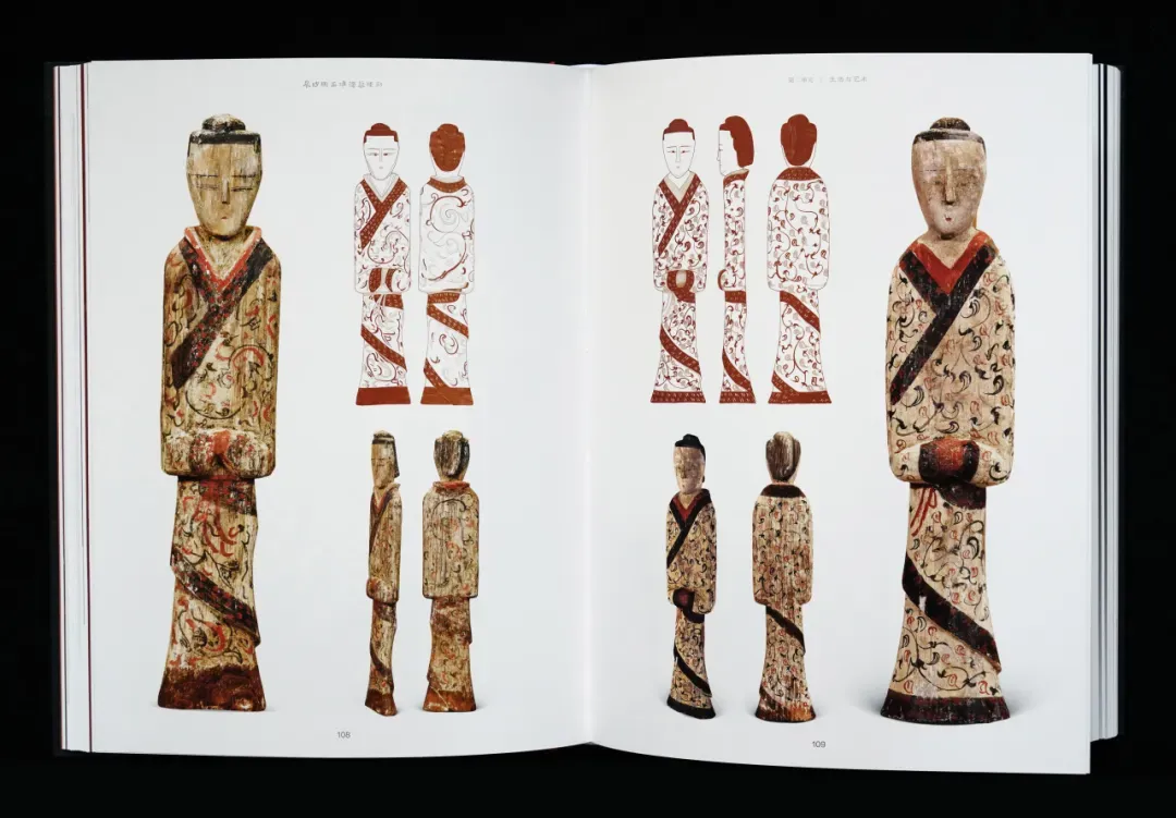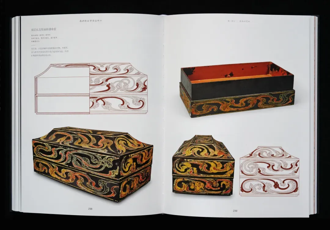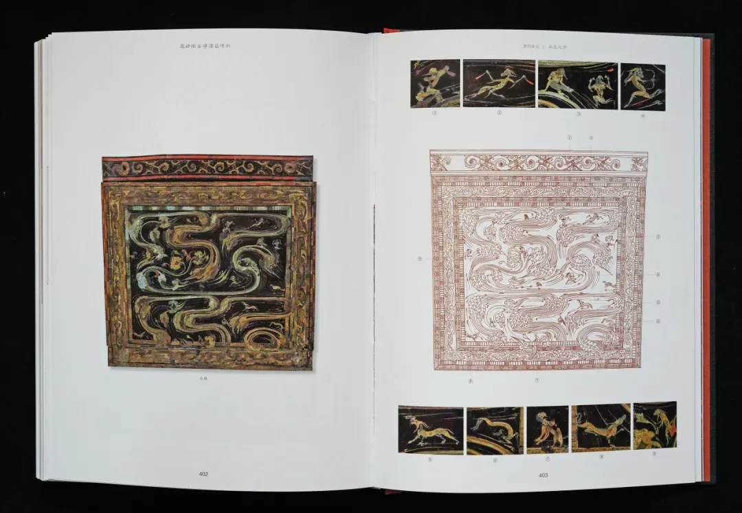 较初版新增130面篇幅,增补替换近300幅多角度图、细节图与线图,搭配多处精心设计的拉页,让全书图片总量突破1500幅。那些展厅中因空间、光线限制难以细察的细节——简牍上深浅交织的墨迹、漆器上繁复流转的纹样、丝织品经纬间的细腻肌理、帛画中层次微妙的色阶,都在书中被清晰放大,实现了对展览的有效延伸与补充。